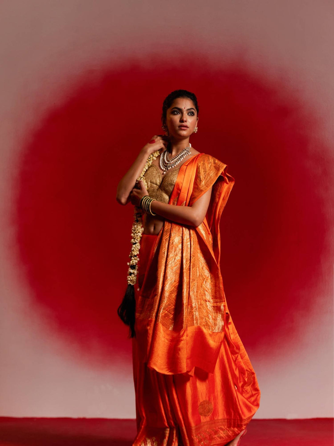 Sumedha (Orange Kadwa Mushru Silk Saree)