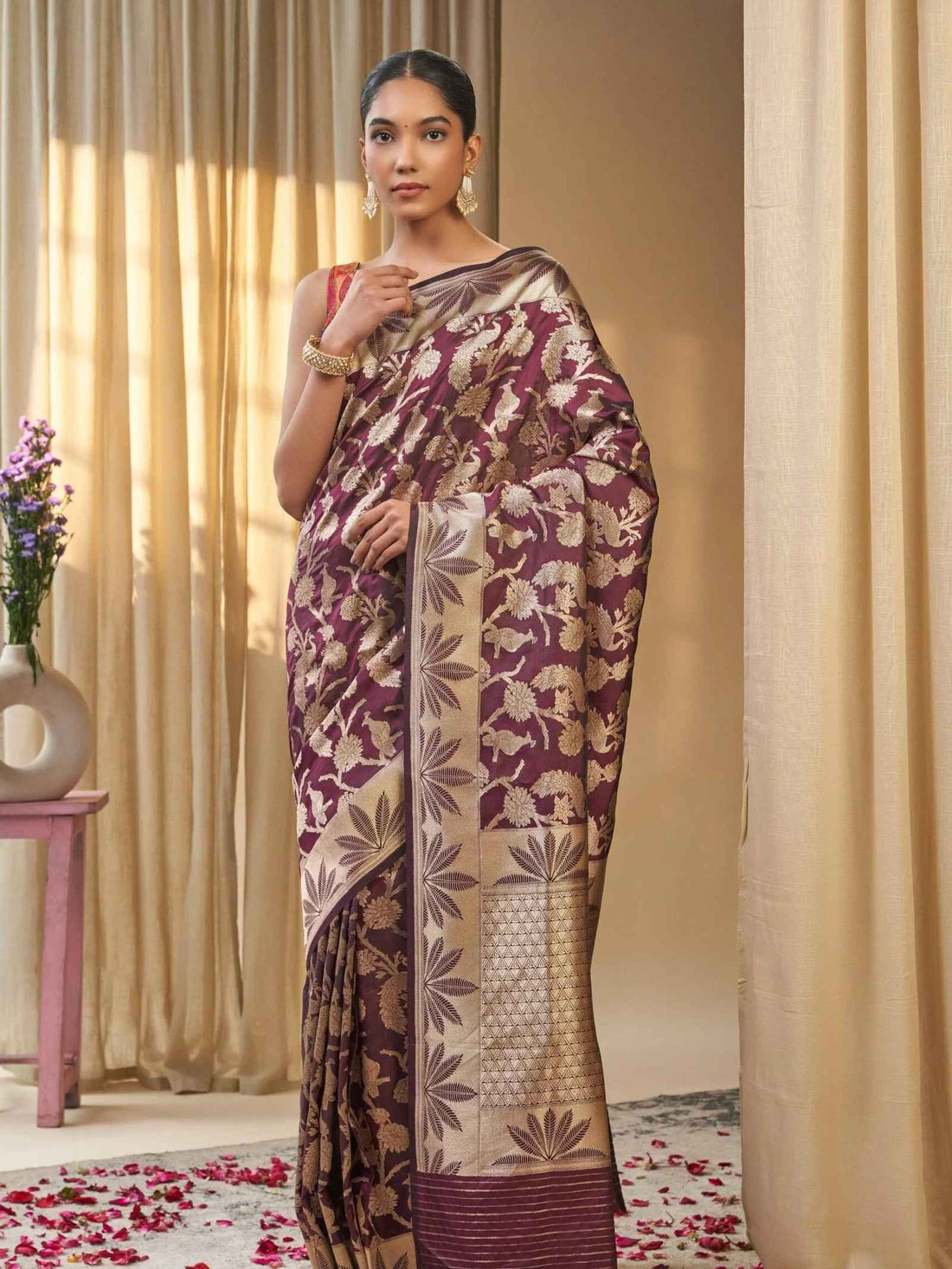 Step into a world of regal elegance with Yogini (Majestic Deep Purple Katan Silk Saree)...