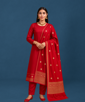 Wrap yourself in timeless tradition with the Nitya (Brocade Red Paisley Saree) — a luxurious...