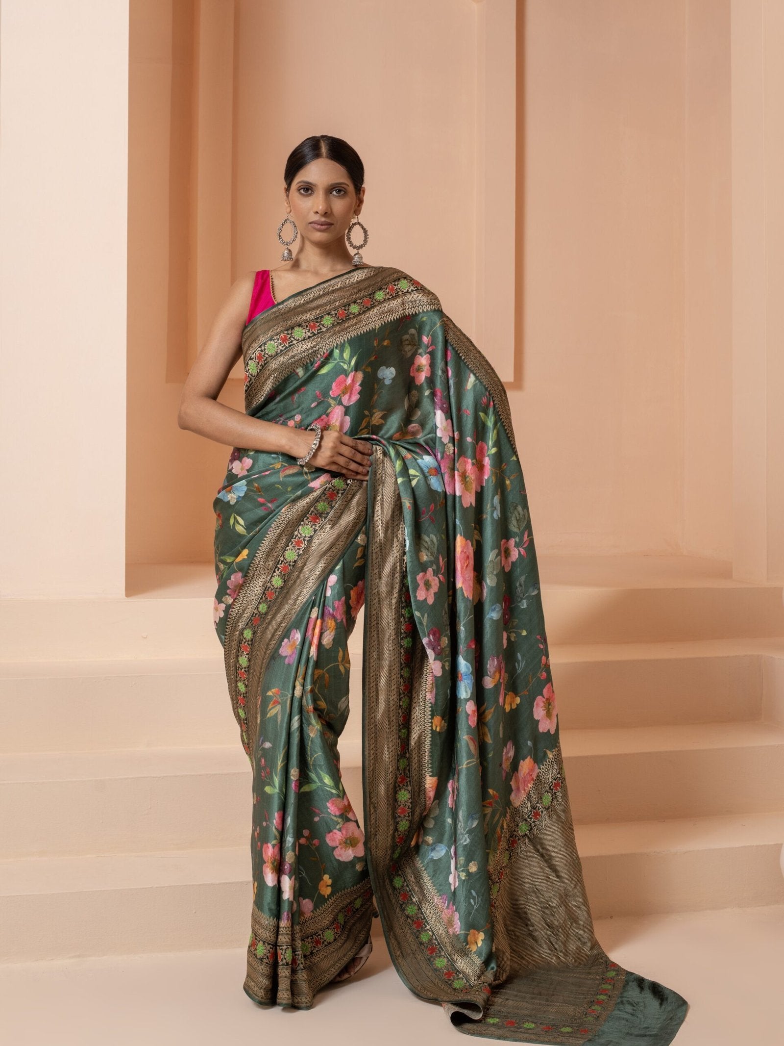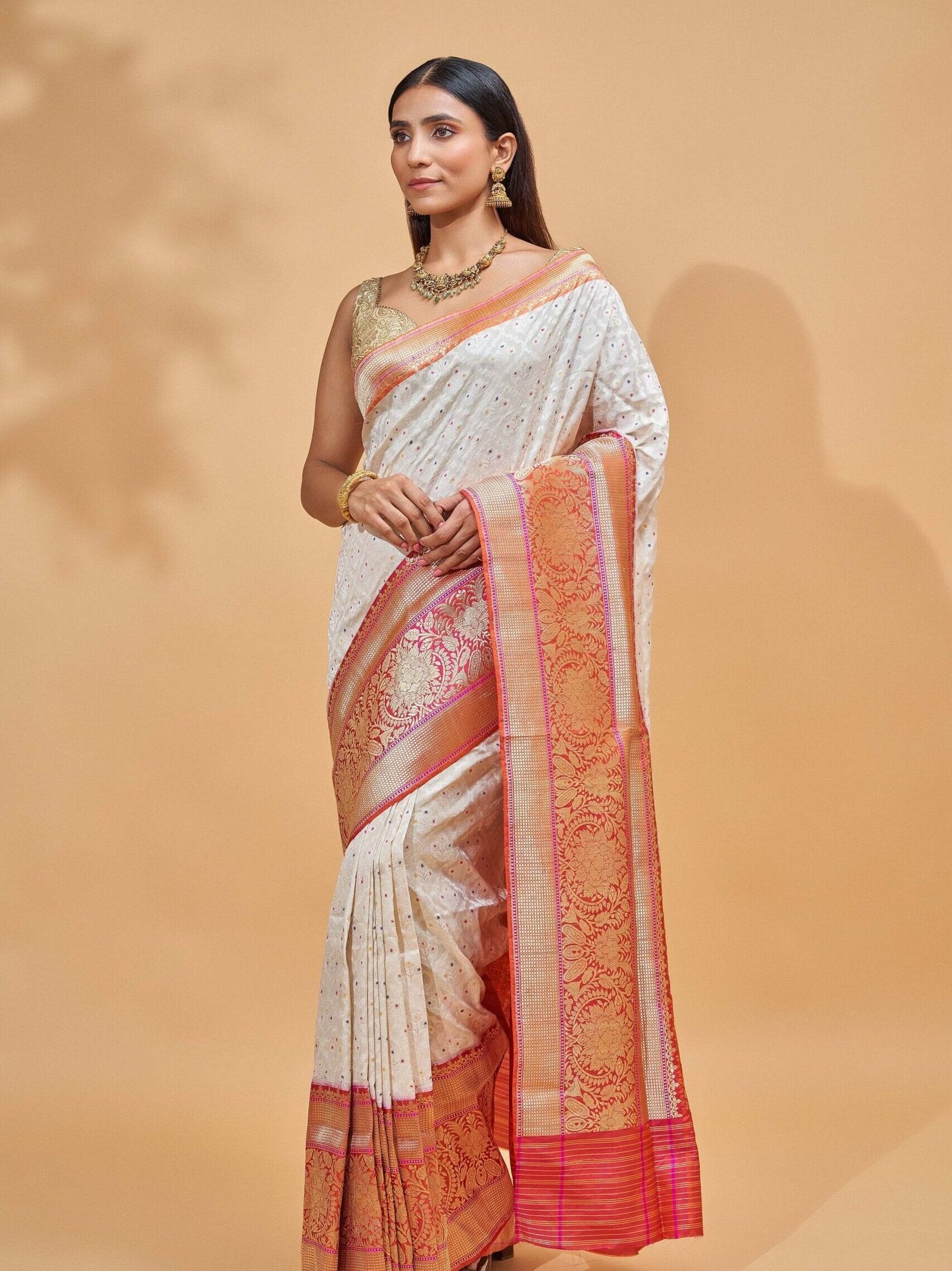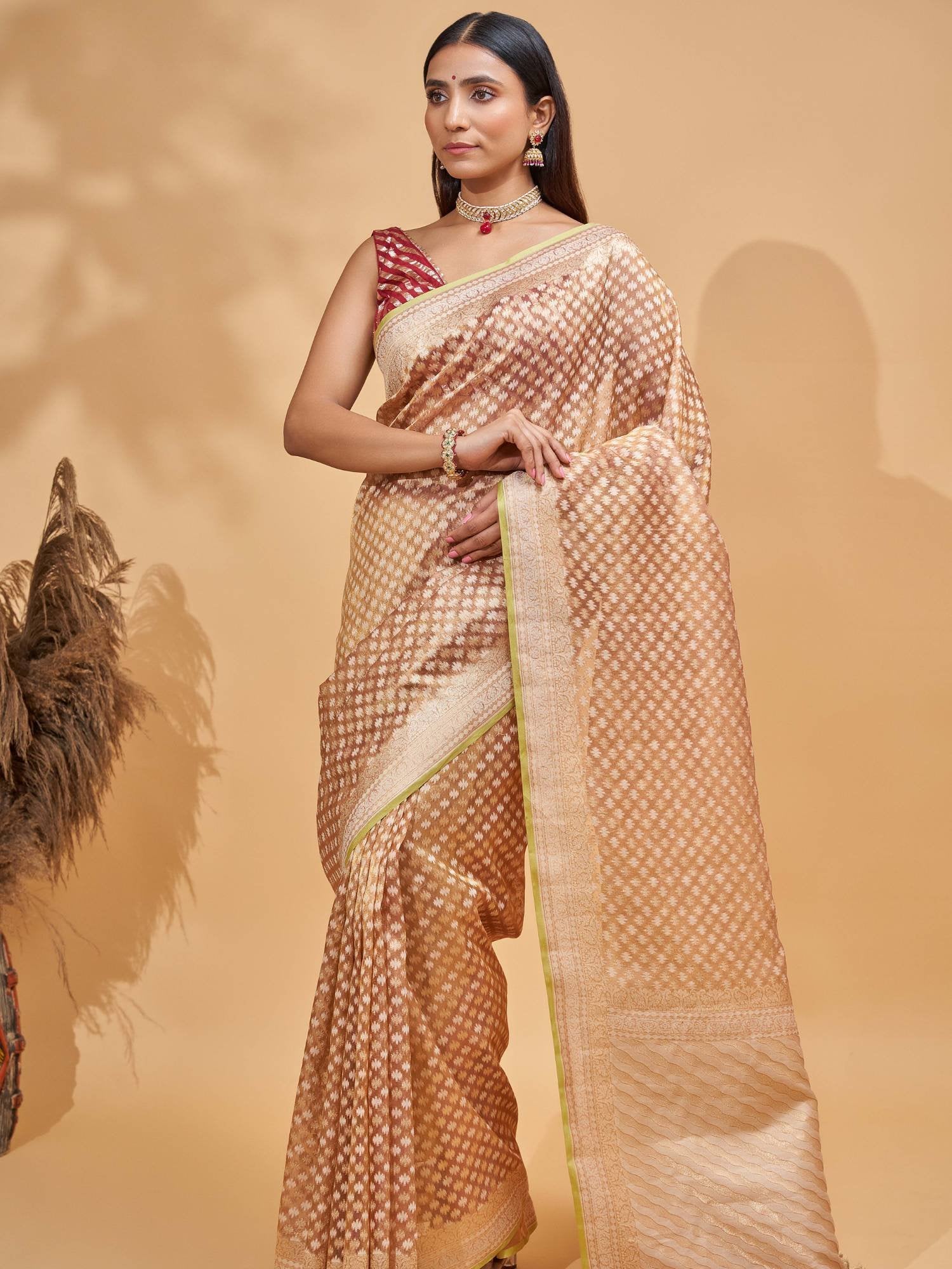 A Banarasi Silk Saree styled right can effortlessly blend tradition with trend.