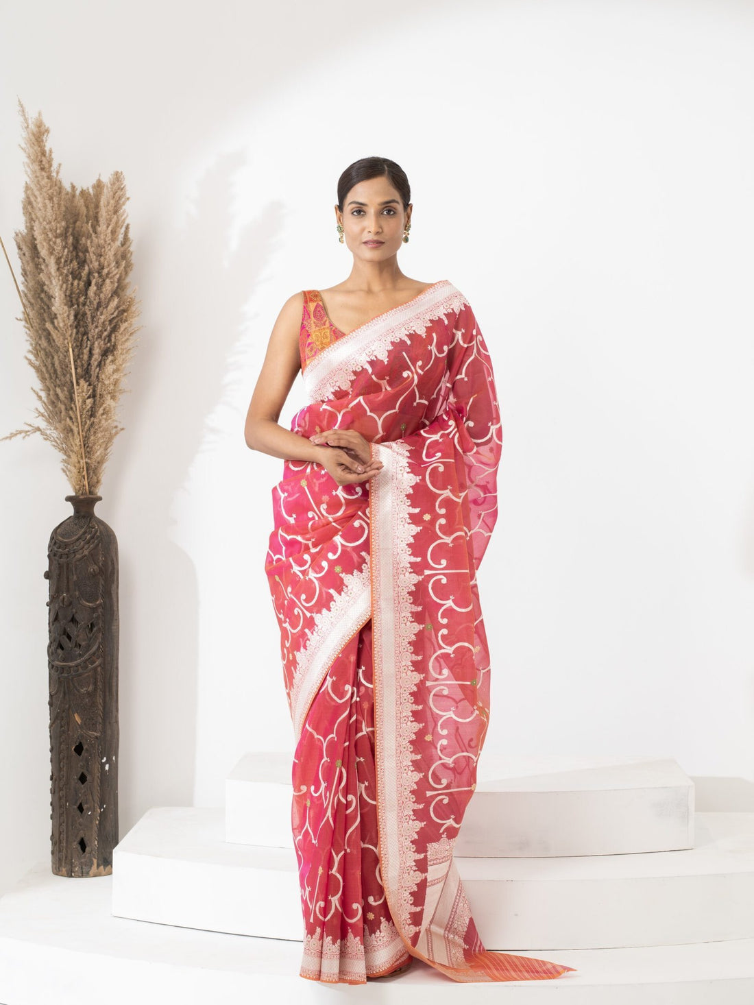 Immerse yourself in the grace and tradition of Banaras with the Chandralekha (White and Red...