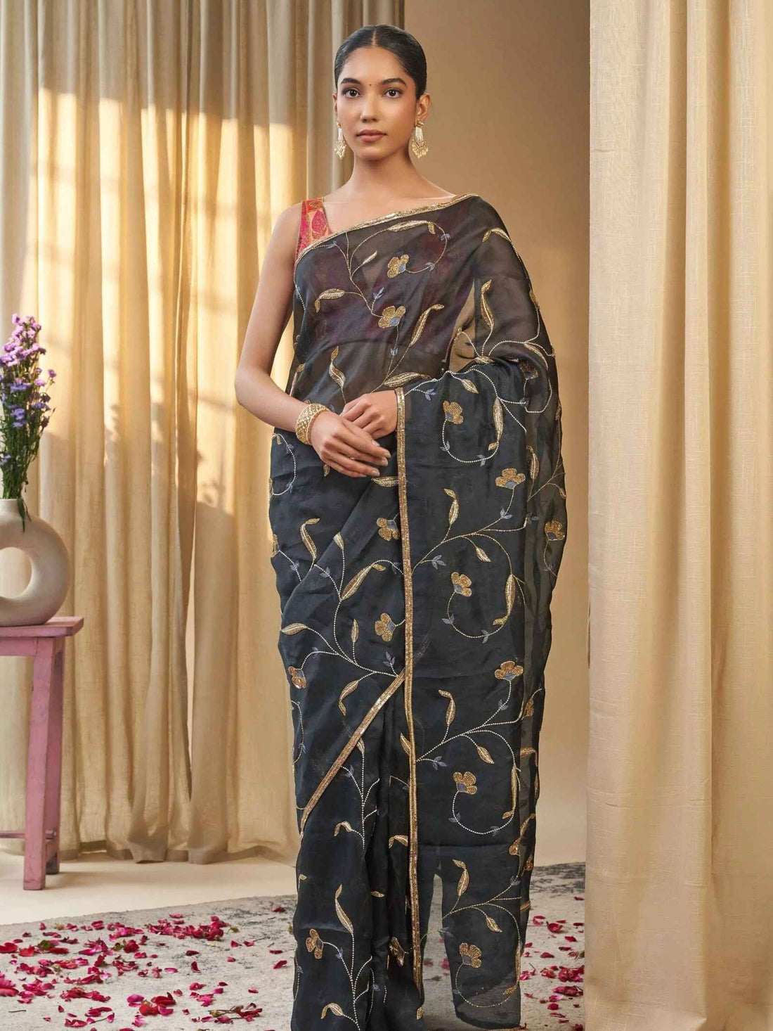 Tejasvini (Hand Embroidered Zardosi Organza Saree)