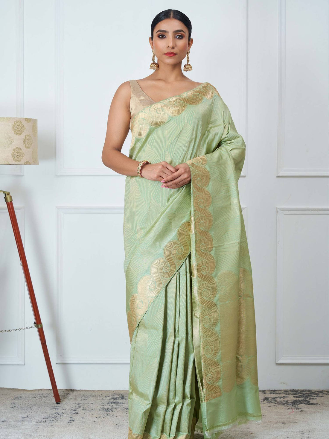 Step into the world of heritage and contemporary design with the Ragini (Pista Green Zari...