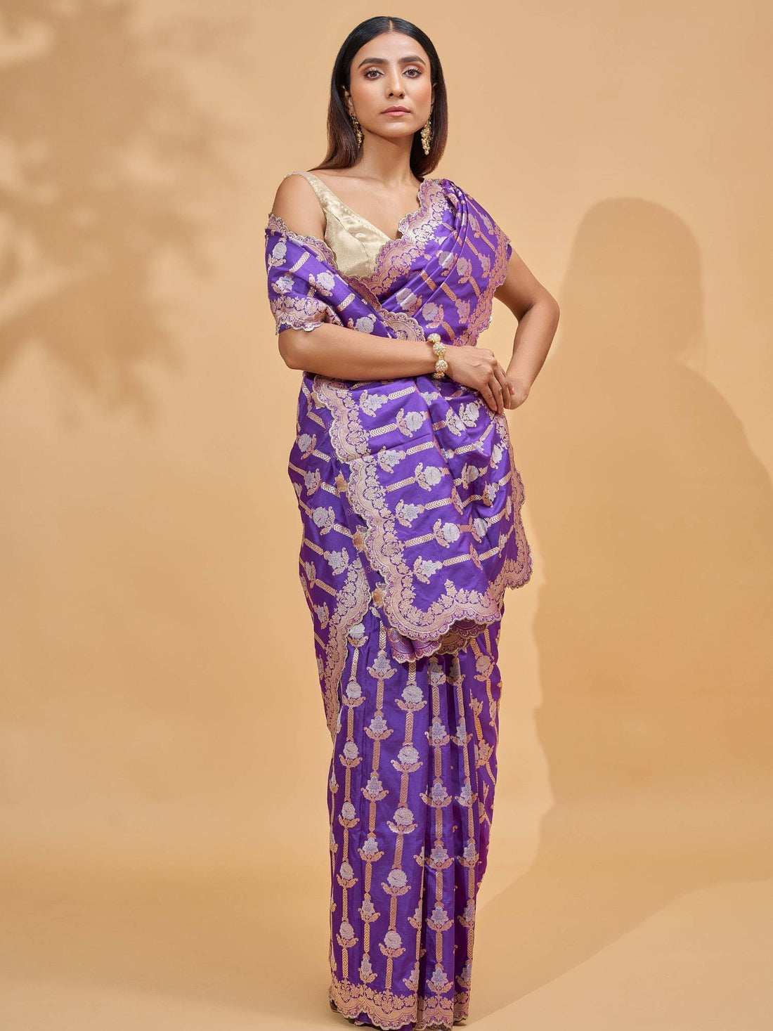 Step into a world of regal charm with the Nandini (Purple Shikargha Kadwa Saree) —...