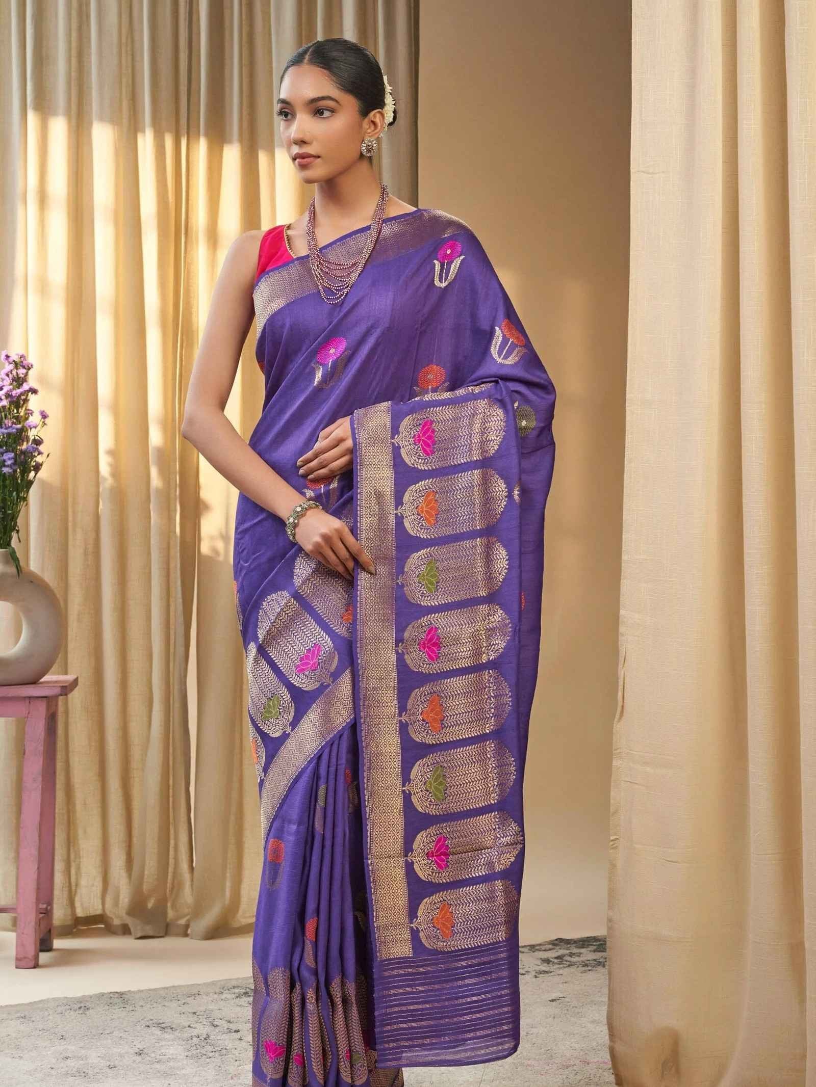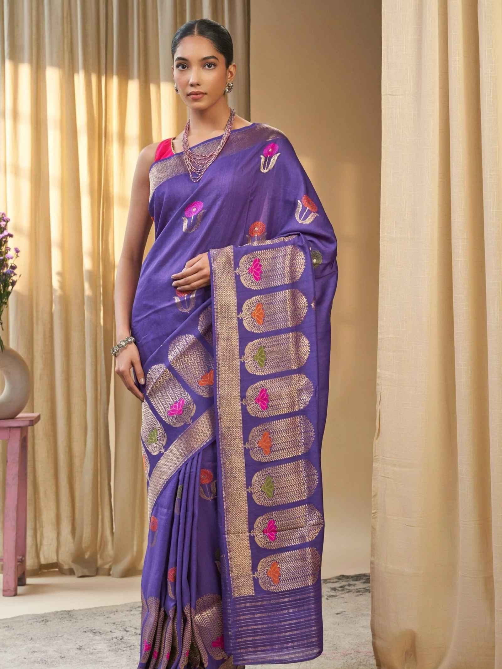 Despite its opulent appearance, the saree remains feather-light, offering both comfort and grandeur. Whether worn for a wedding, festive event, or an elegant evening celebration, this purple beauty exudes sophistication at every glance.