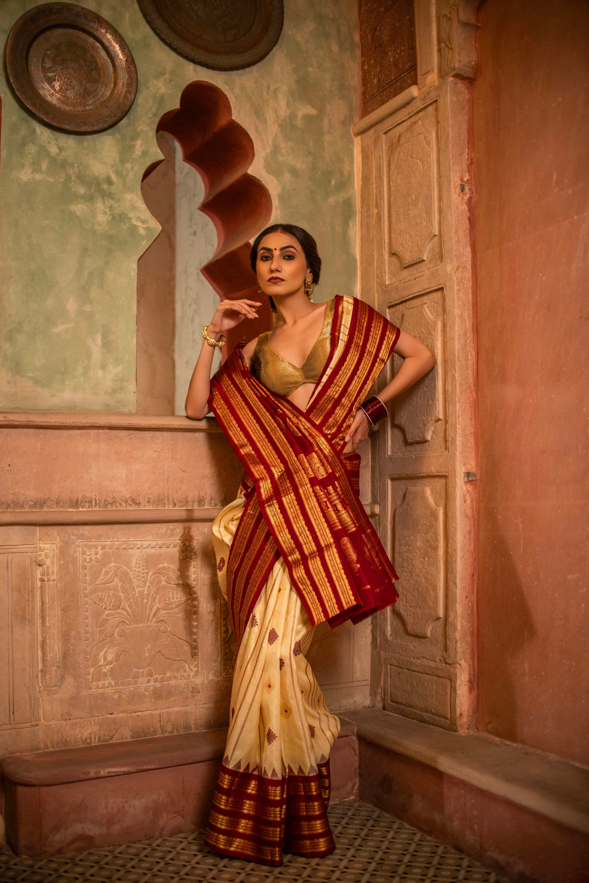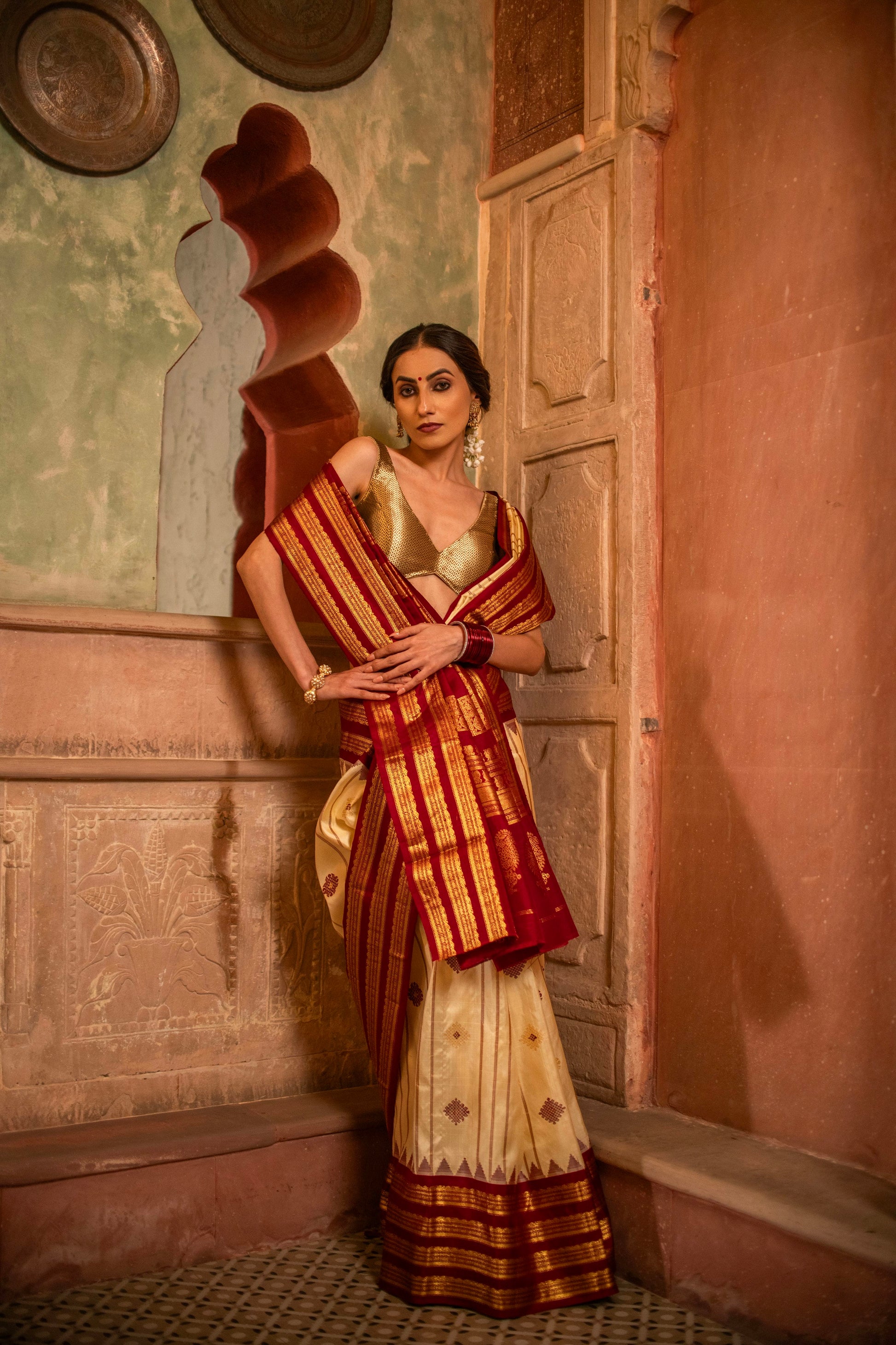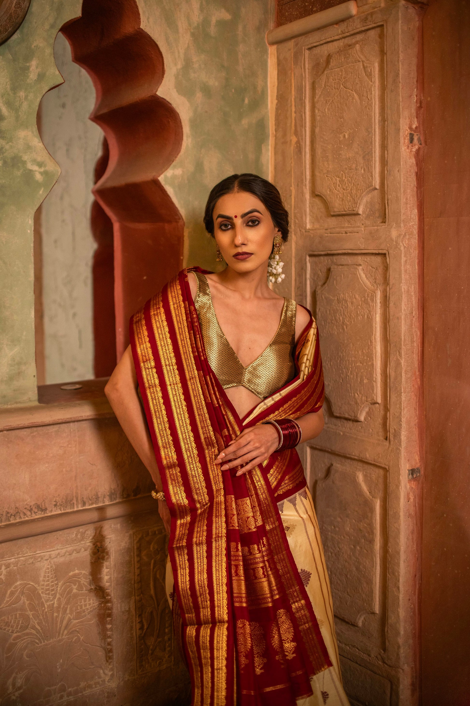 Classic Gadwal Silk Saree with Red and Beige Harmony