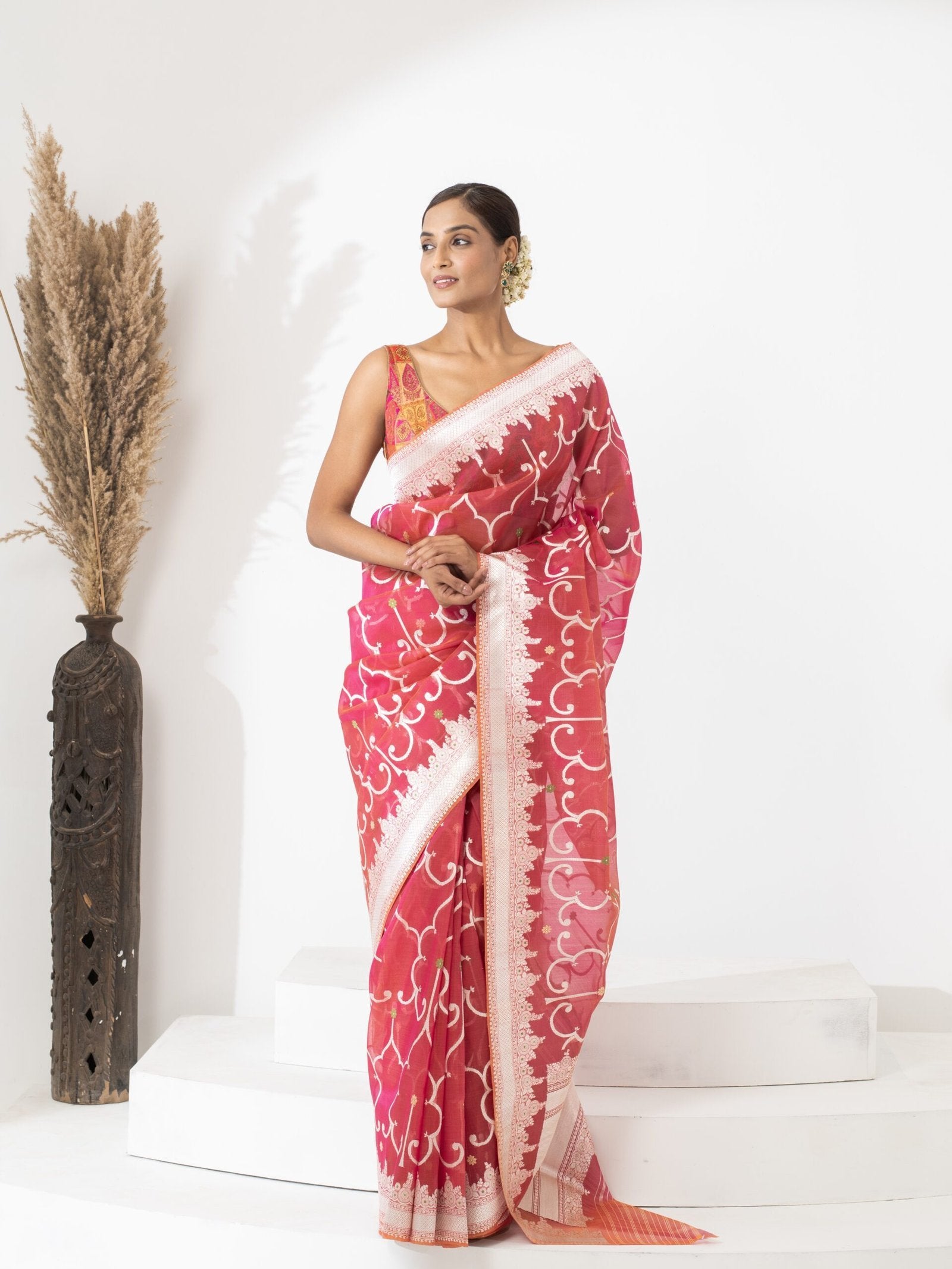 Dayanita (Designer Gota Patti Kadwa Weave Kora Saree)