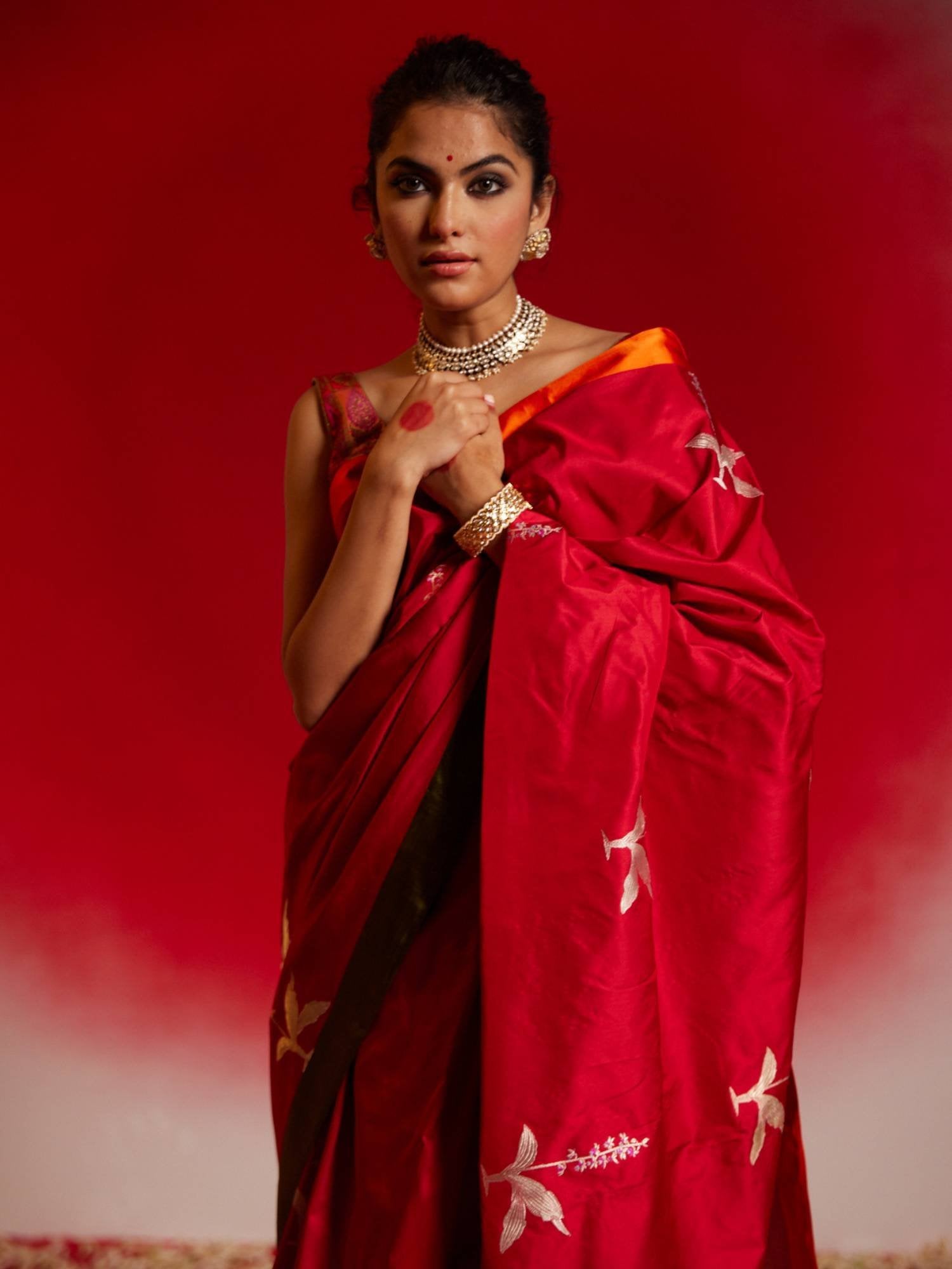 Color Palette: A bold and auspicious red, symbolic of power and celebration