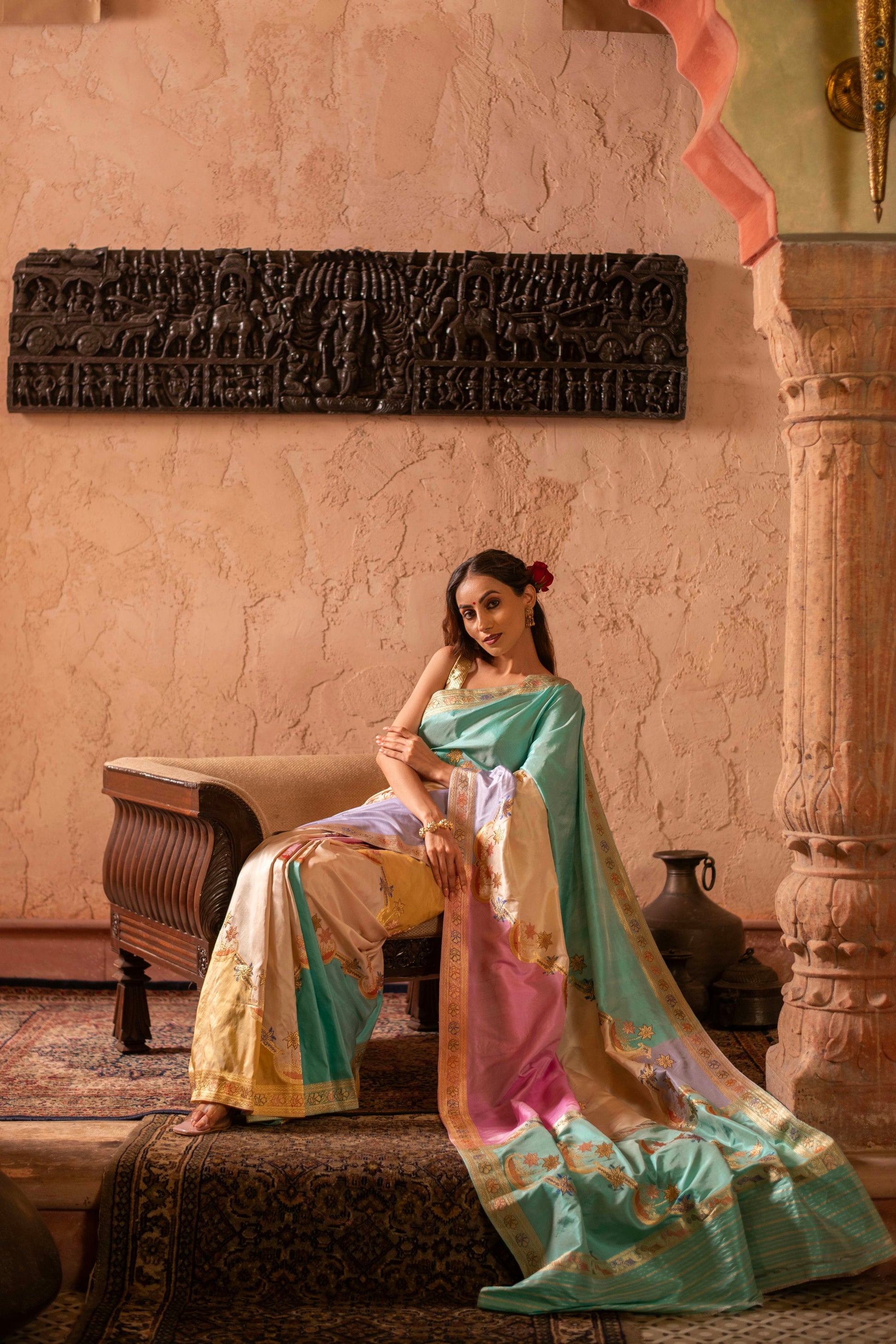Exquisite Bright Shade Rangkat Weave Saree