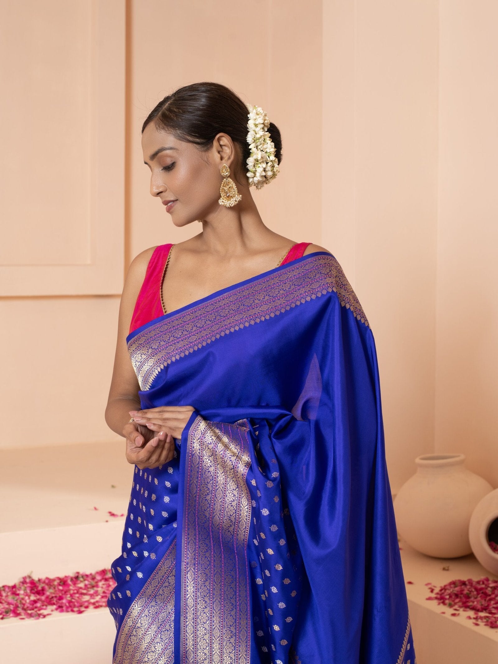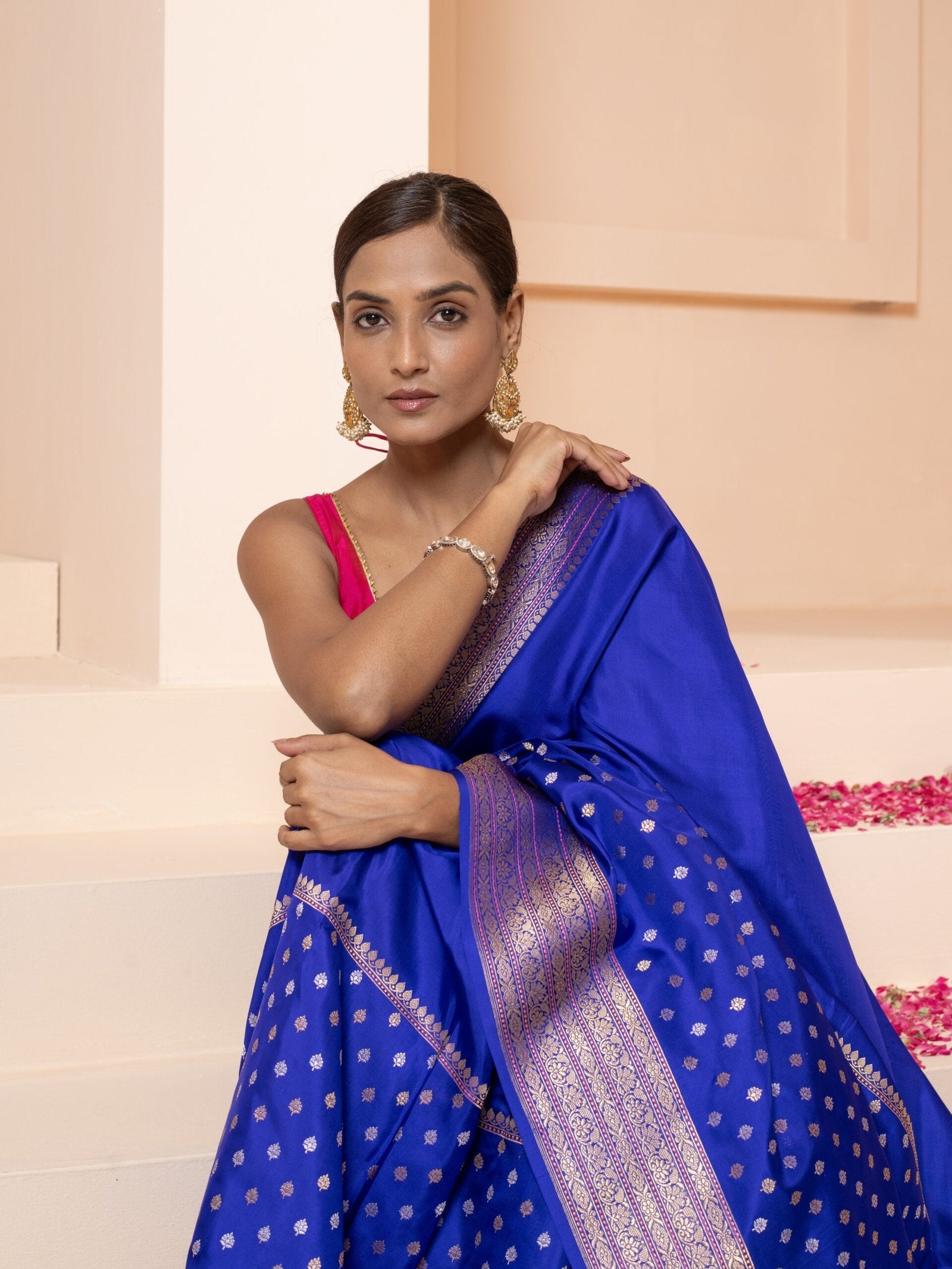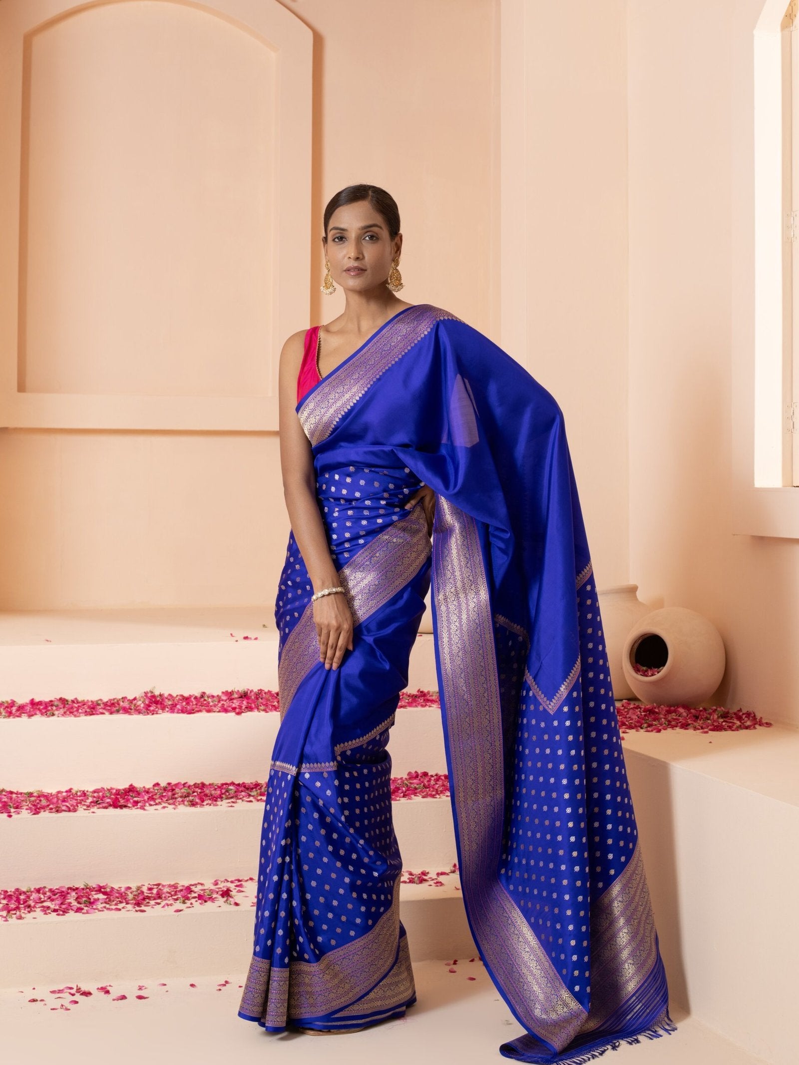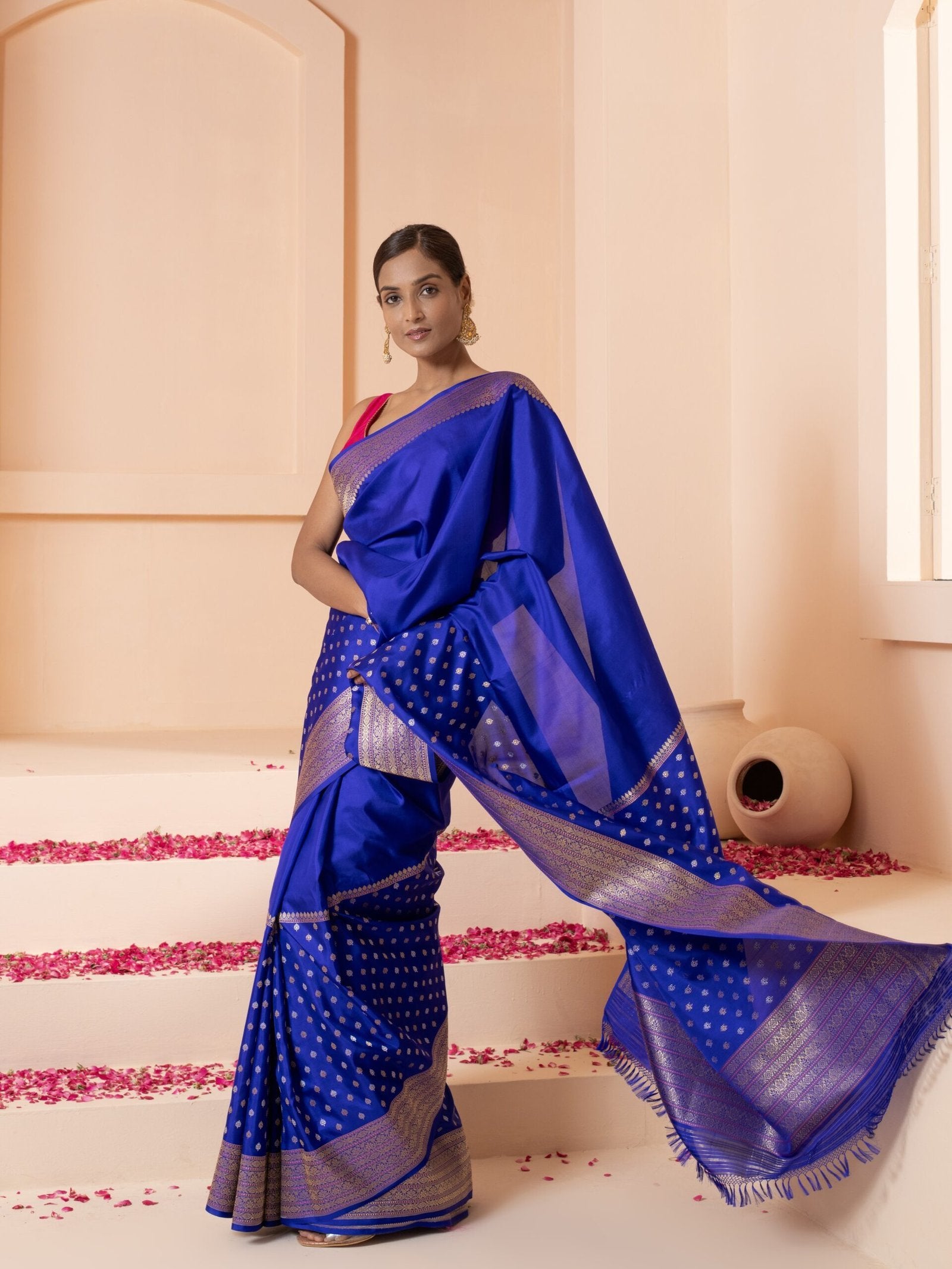 The Gomati (Royal Ink Blue Kadwa Banarasi Saree) is not just an outfit—it's a legacy wrapped in silk. Its heirloom-worthy appeal makes it a perfect gift or addition to a treasured wardrobe, representing refined taste and deep-rooted cultural aesthetics.