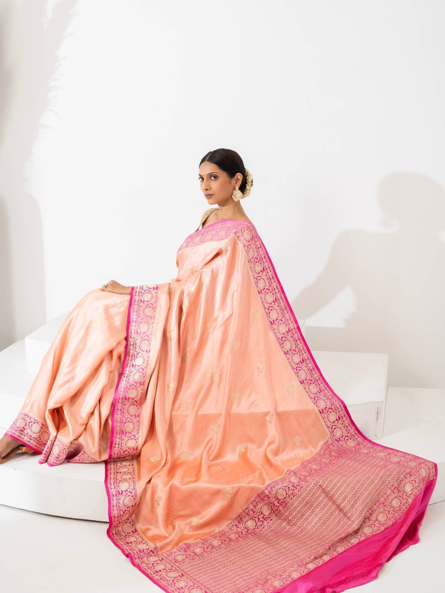 Lakshita (Peach Pink Kadwa Mushru Satin Saree)