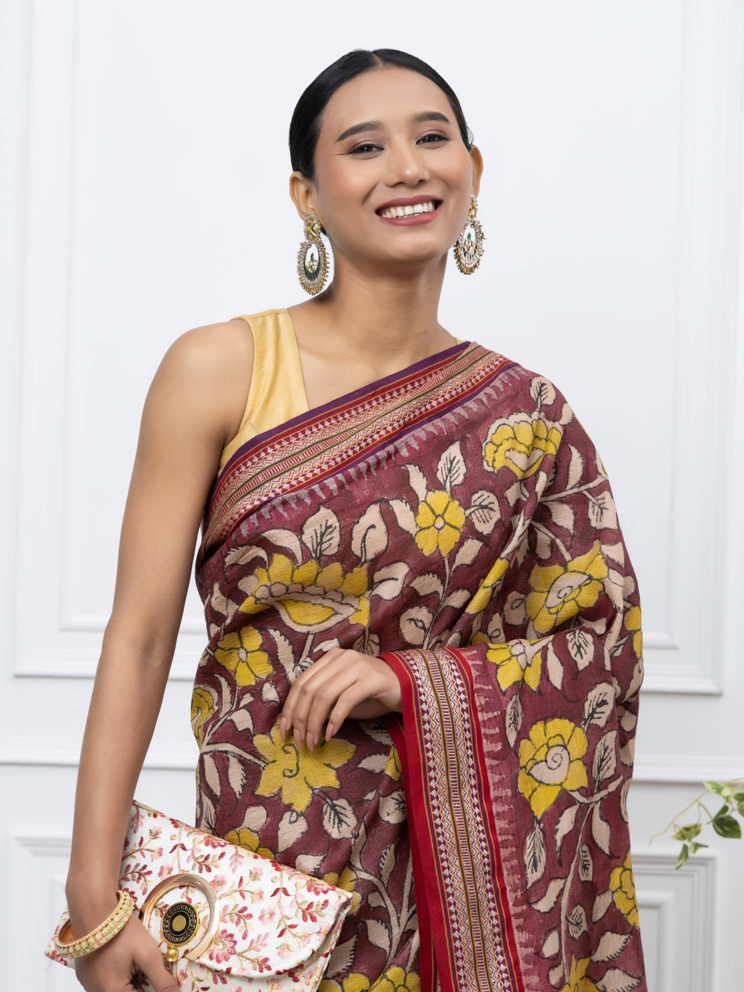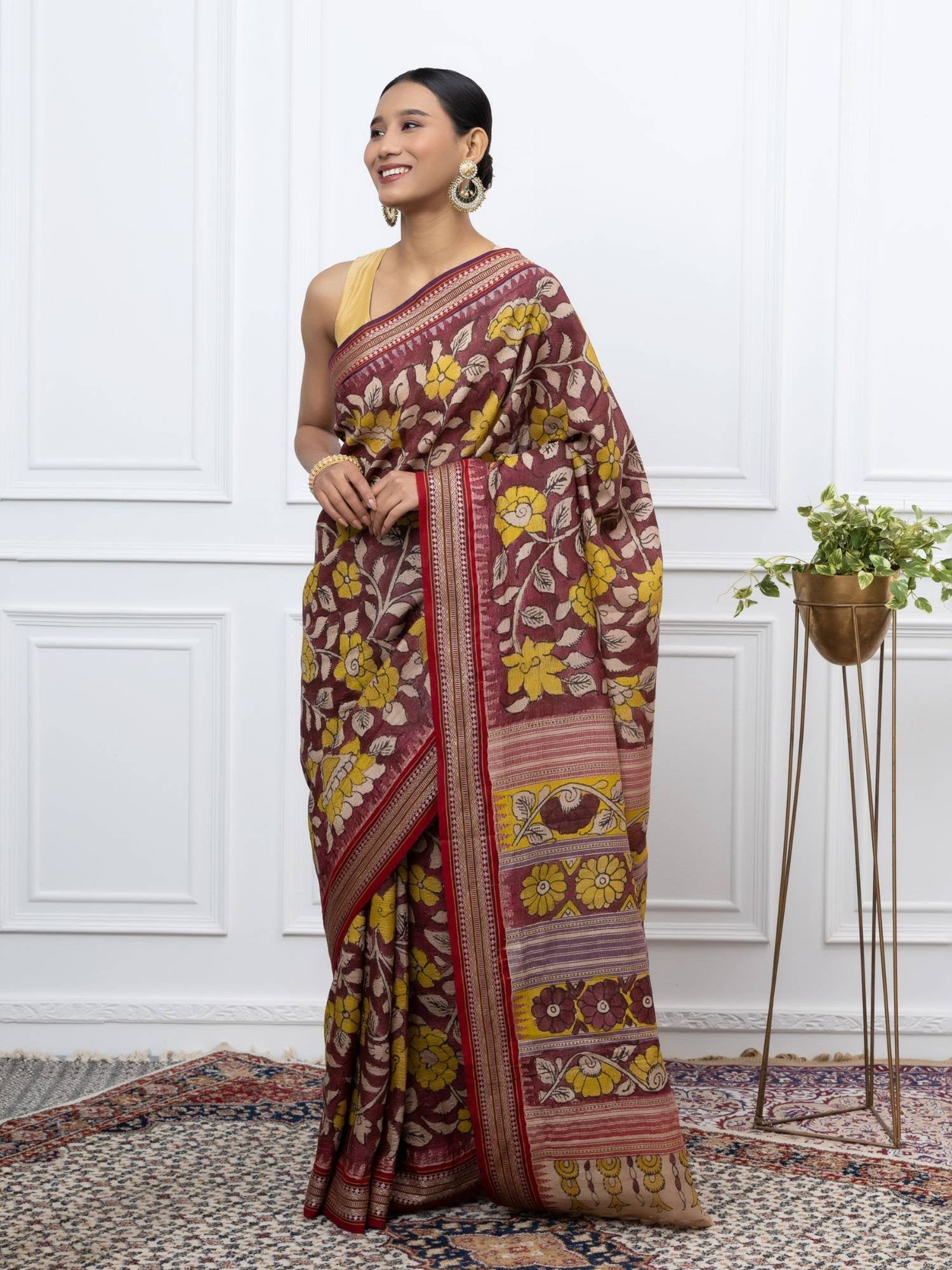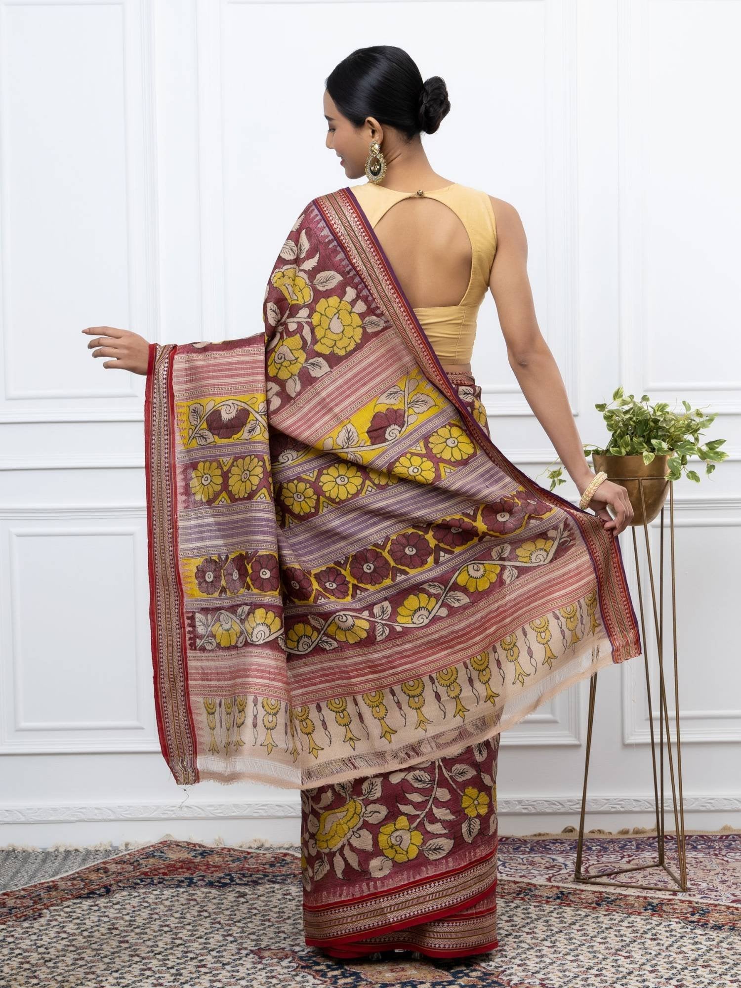 Mridula (Maroon Tussar Pen Kalamkari Saree)