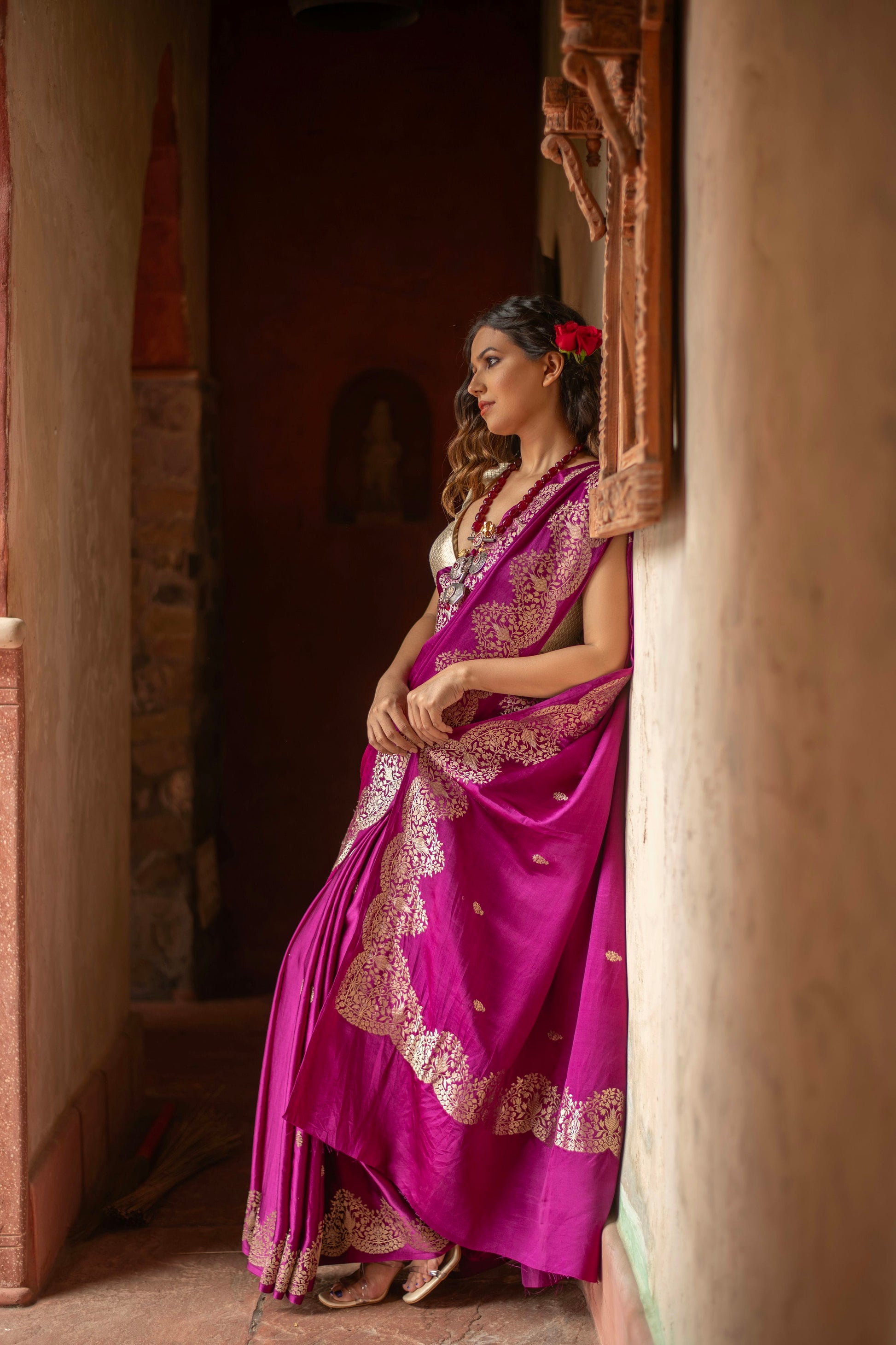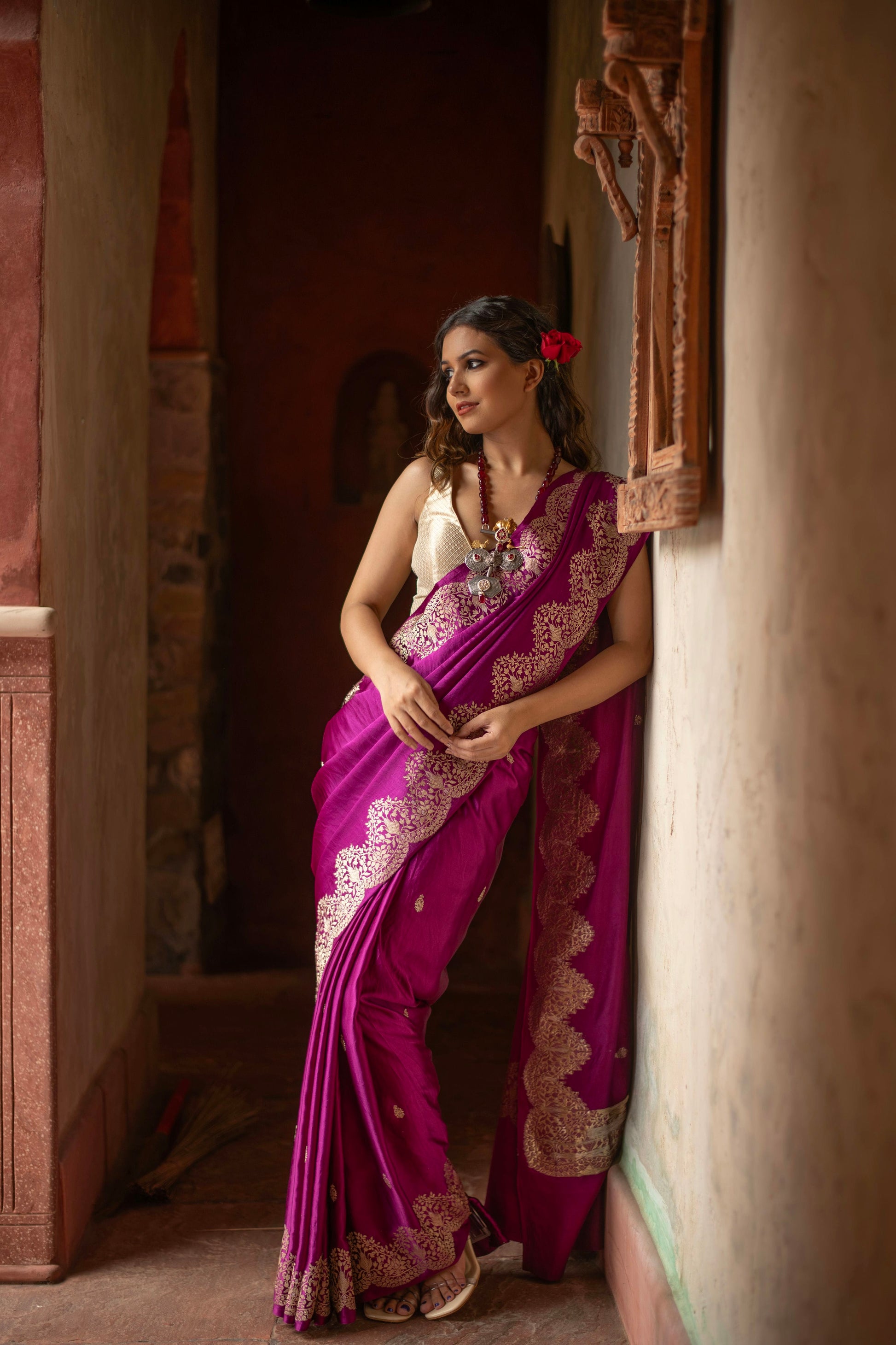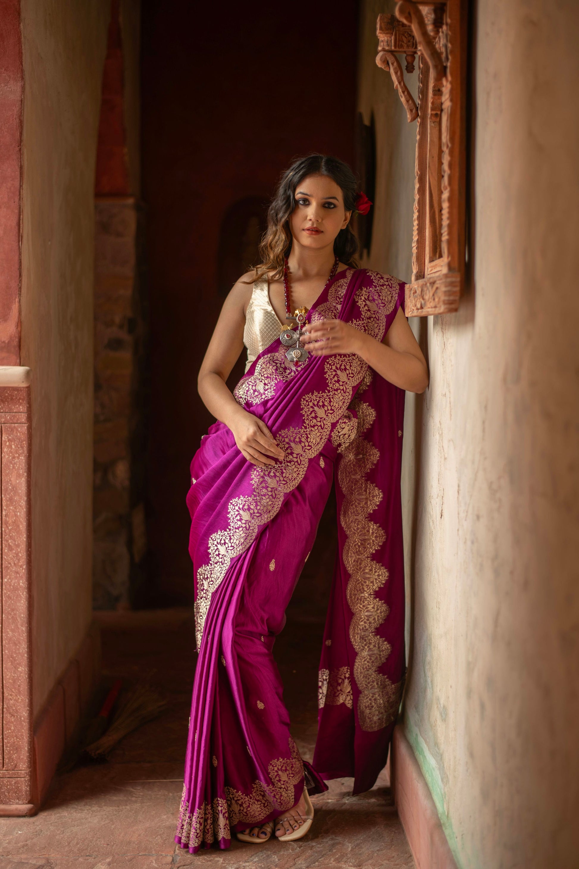 Mushru Silk Saree with Kadwa Weave and Scallop Borders