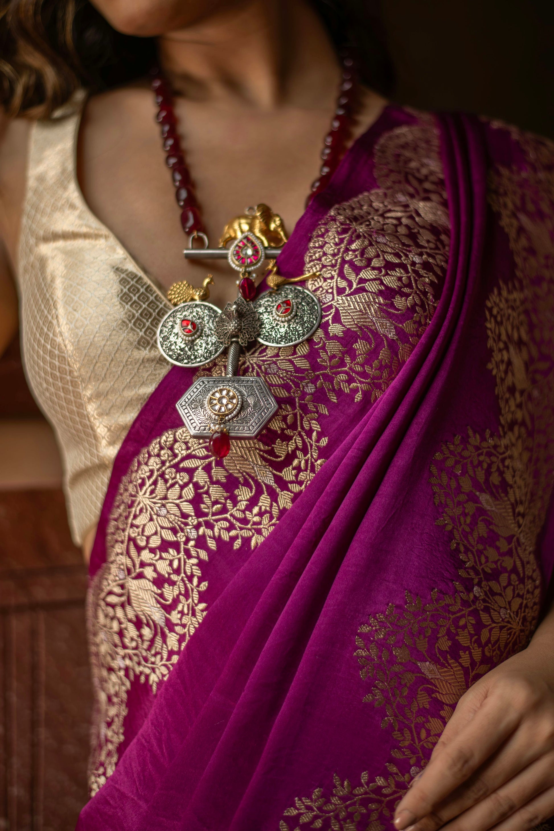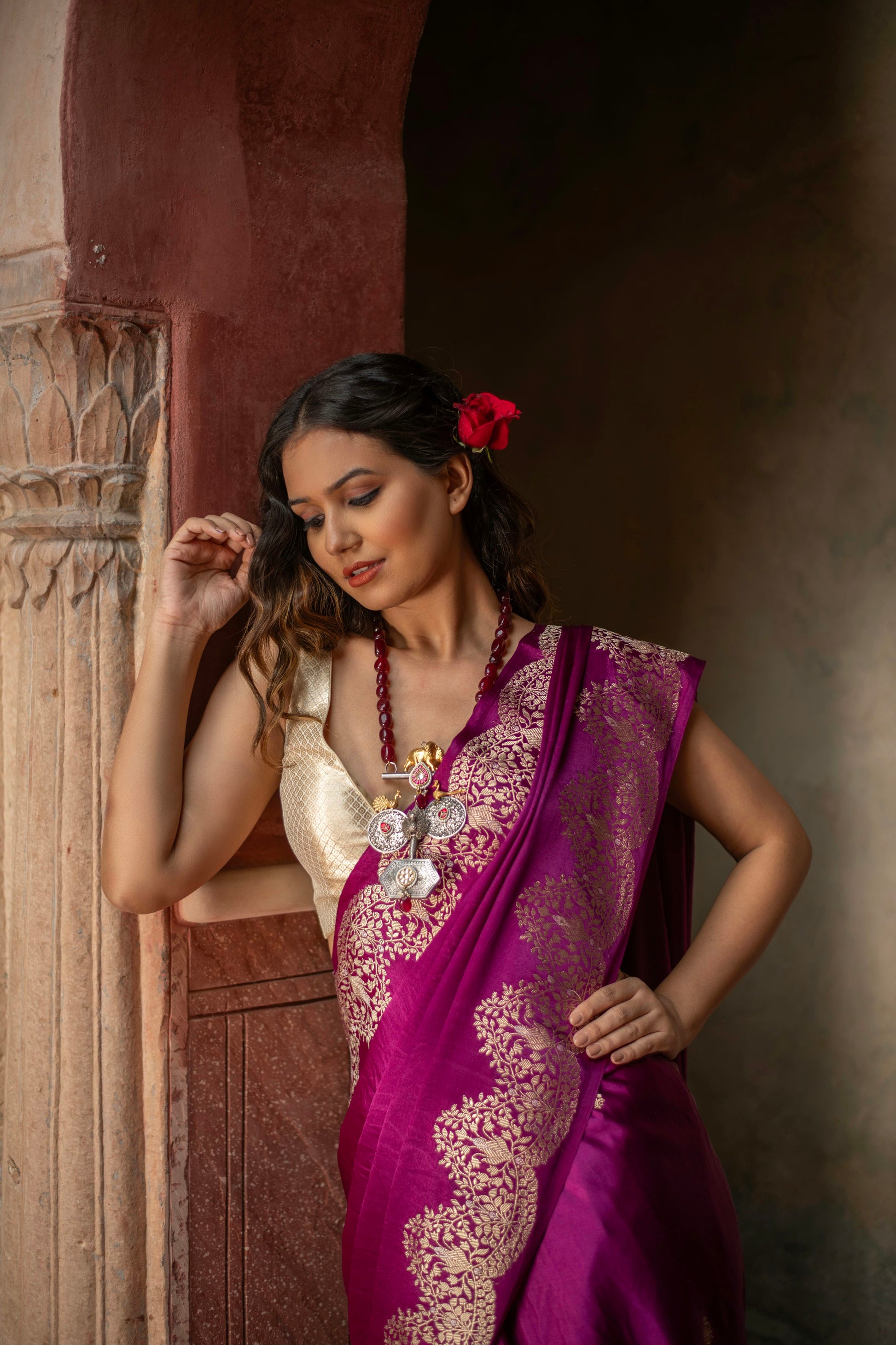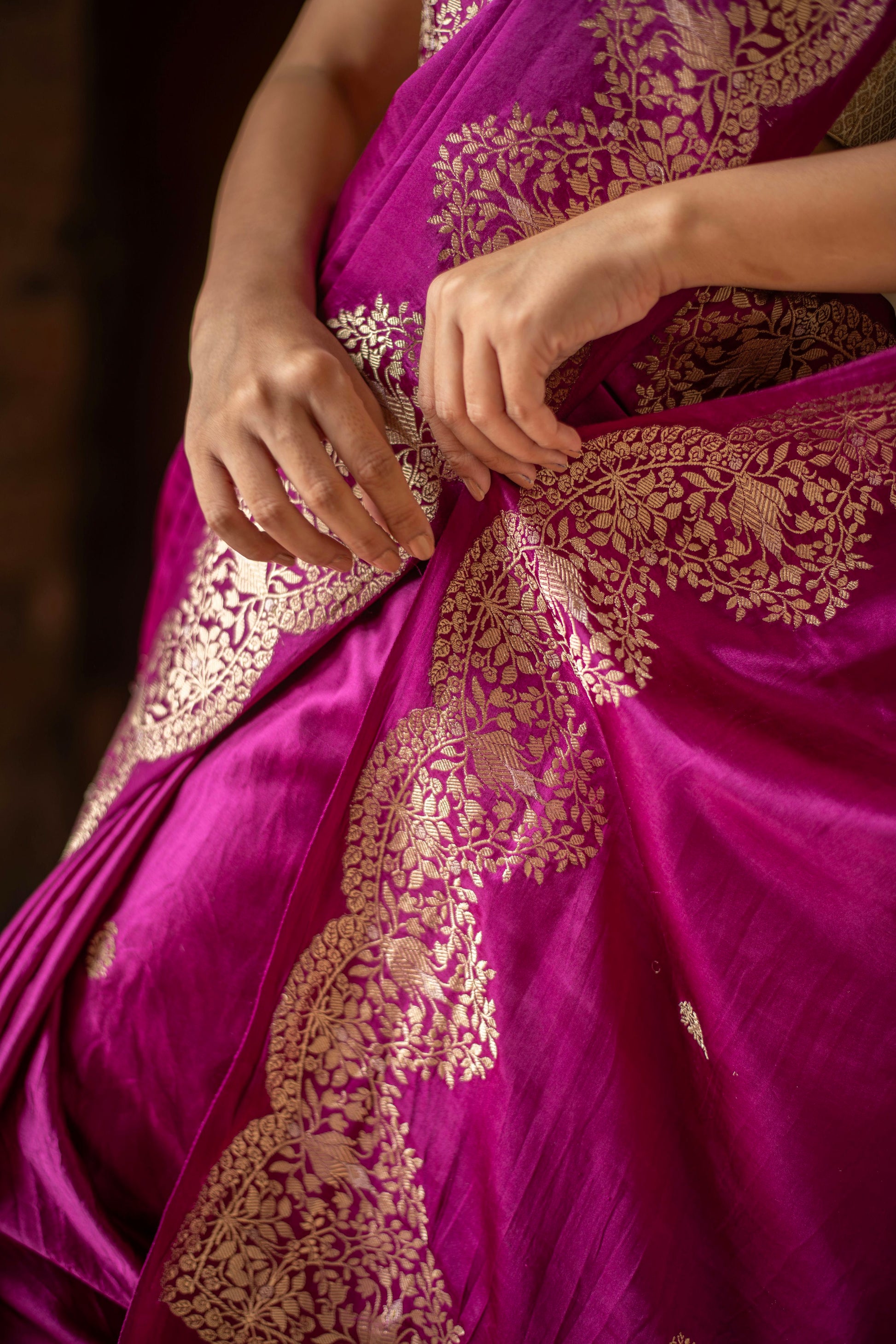 Mushru Silk Saree with Kadwa Weave and Scallop Borders