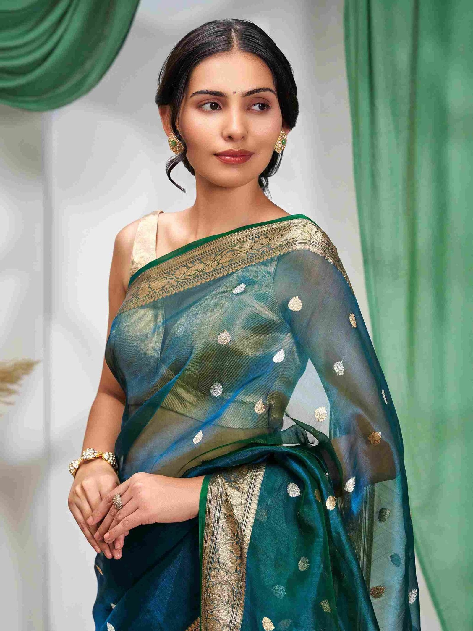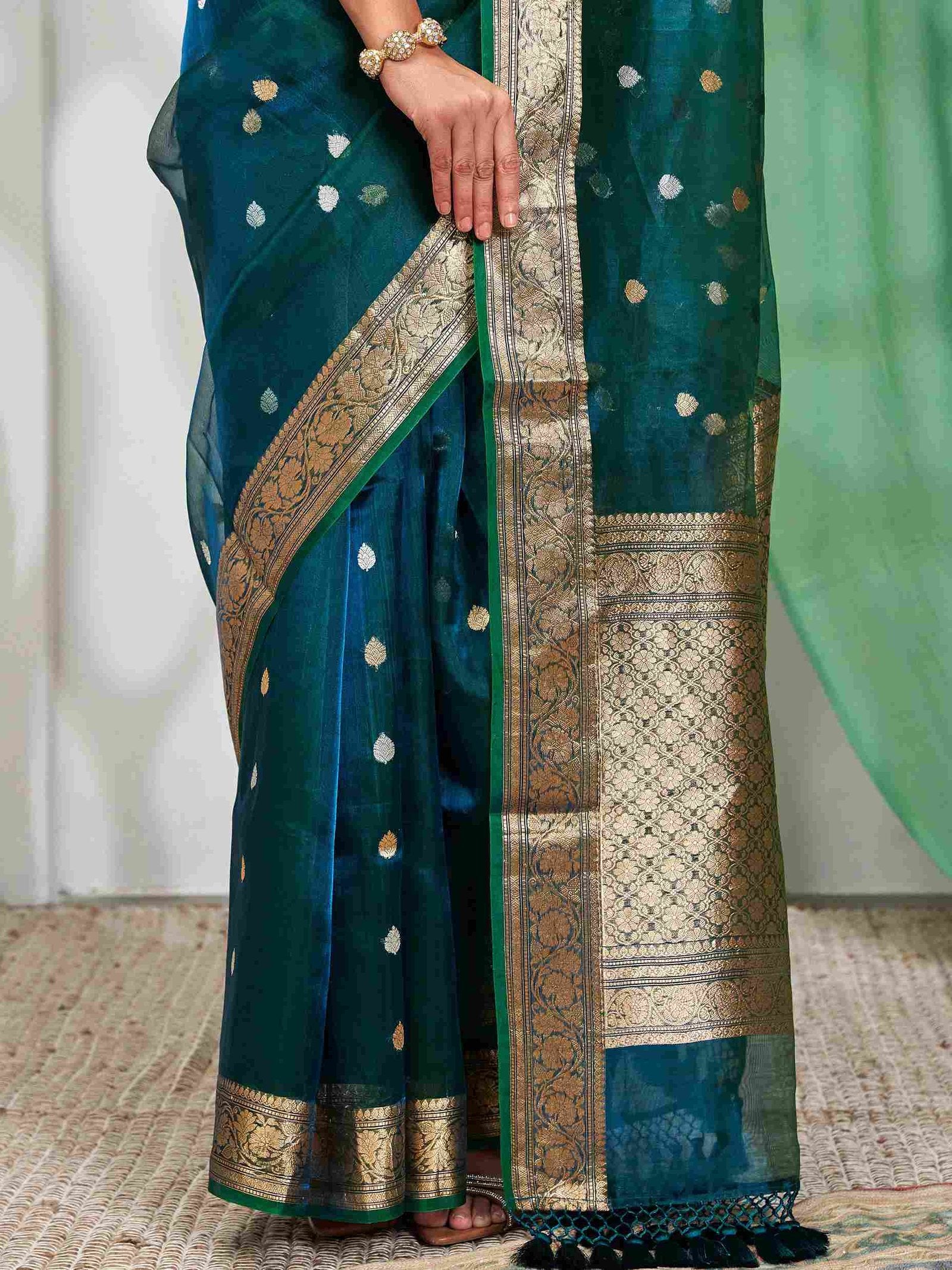 Neelmayura (Peacock Blue Tissue Kora Kadwa Saree)