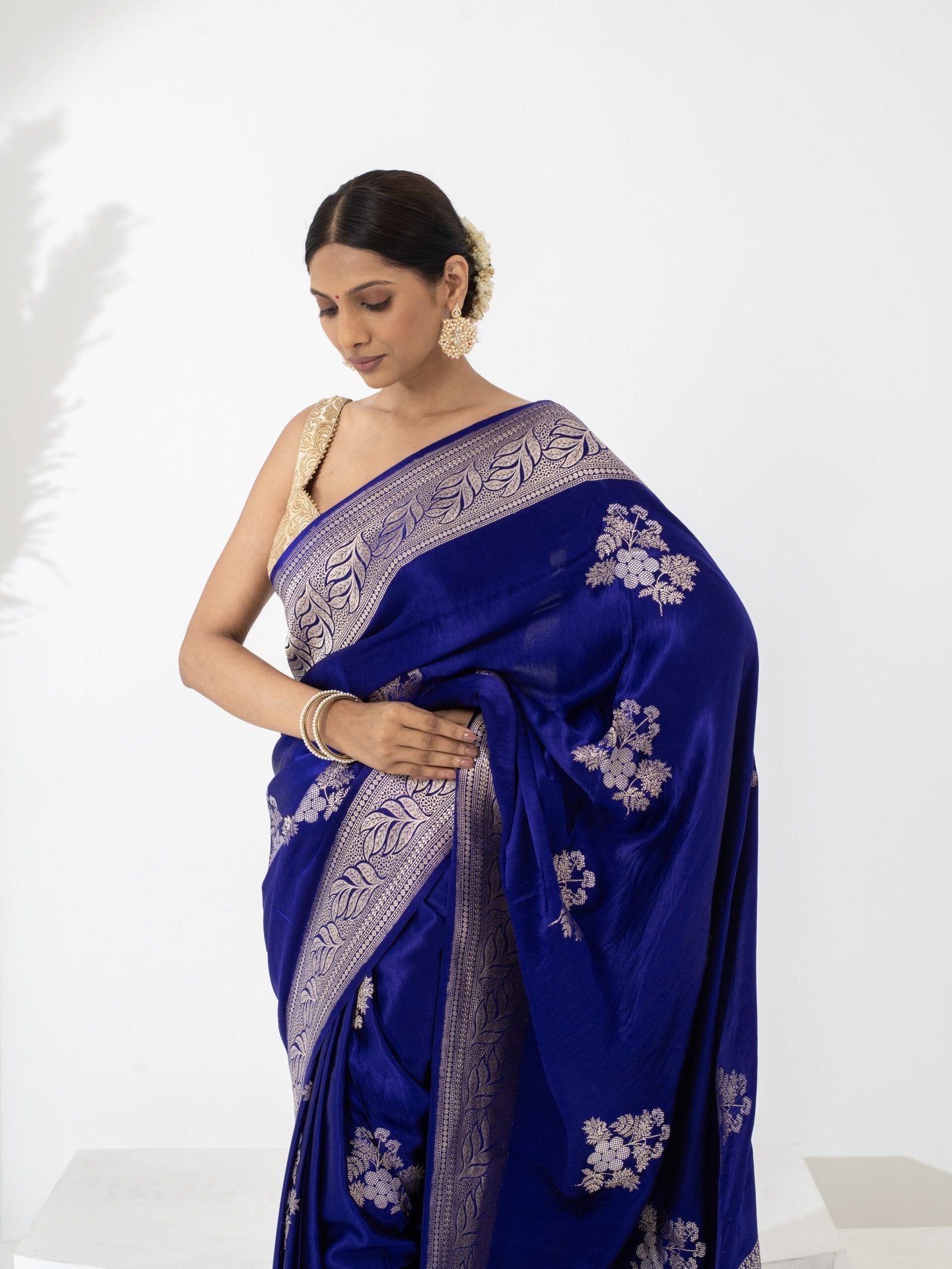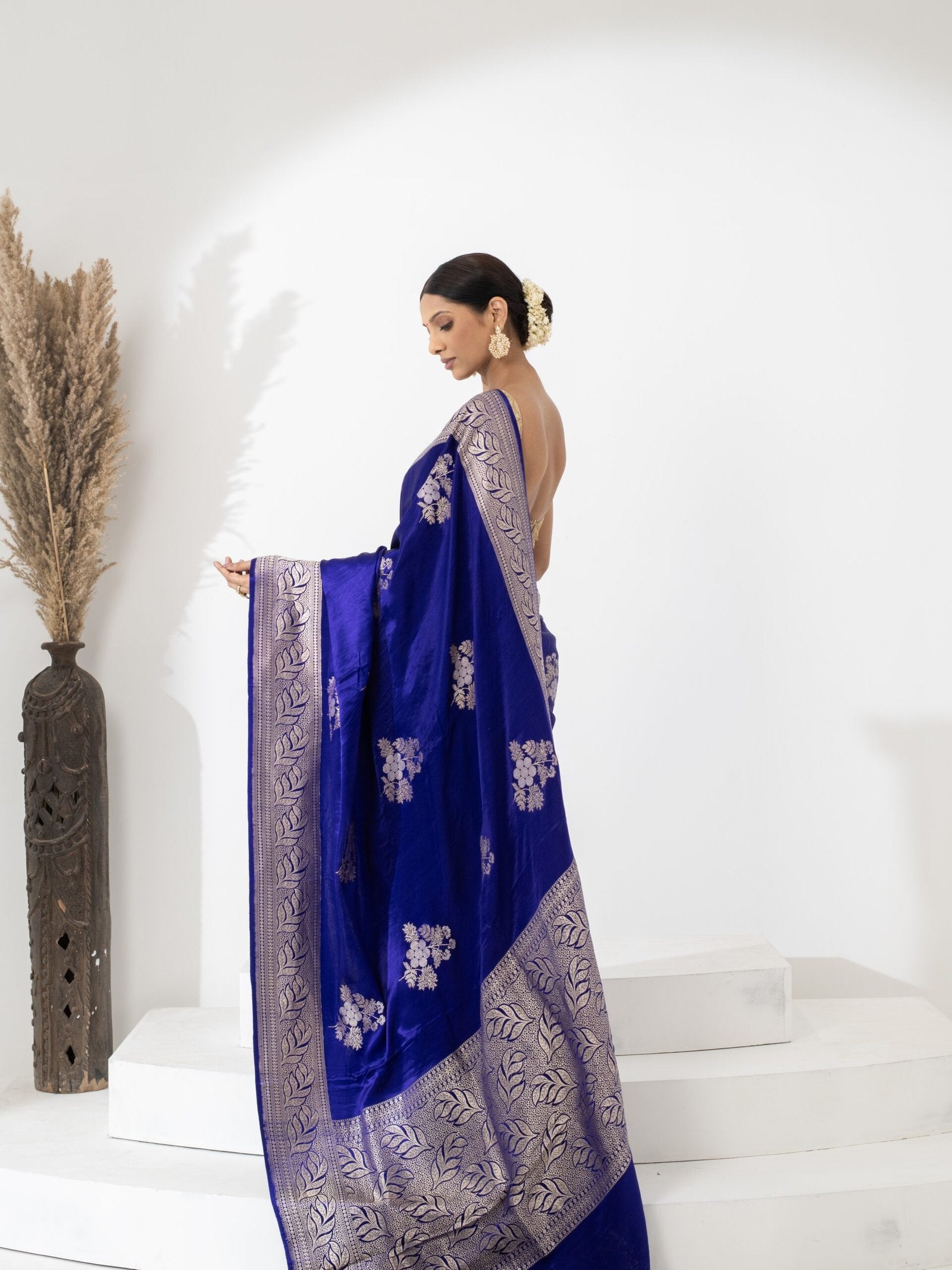 Pair it with heirloom silver jewelry or contrast blouses in pastel or jewel tones for an elevated ensemble. The Pranavi (Ink Blue Mushru Silver Zari Saree) is not just attire—it’s an embodiment of cultural sophistication, timeless design, and contemporary luxury.