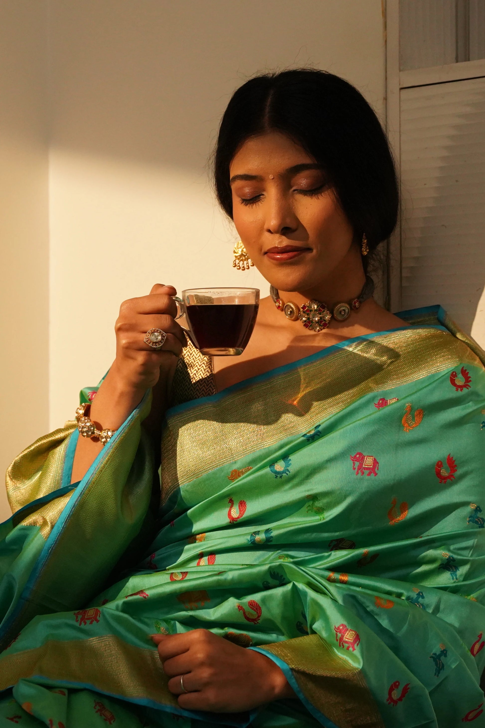 Rooted in the cultural heritage of Banaras (Varanasi), this saree is designed for moments of celebration. Ideal for weddings, festive occasions, and special ceremonies, it offers a balance of comfort, sophistication, and timeless appeal—making it a treasured addition to a heritage wardrobe.