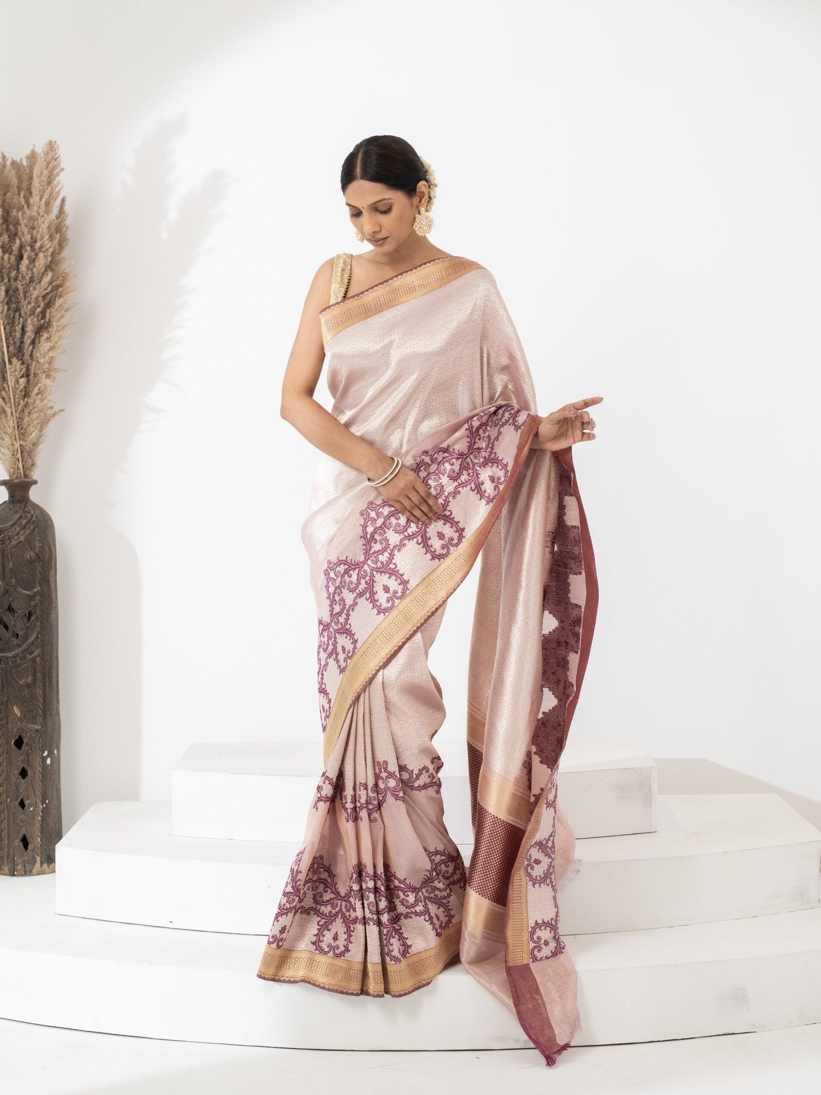 Revati (Champagne Tissue Brocade Jaal Border Saree)