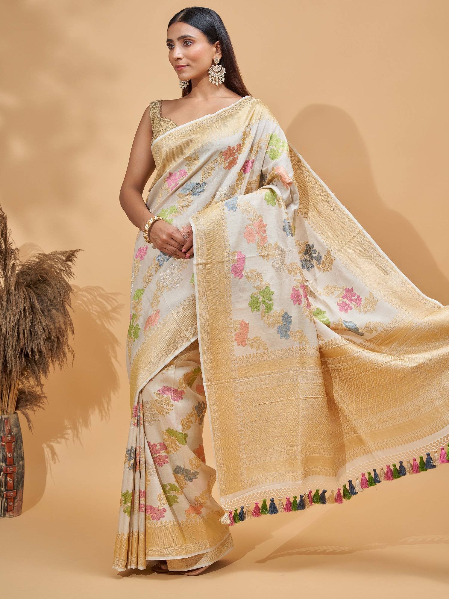 Sharanya (Ivory Tussar Georgette Jaal Saree)