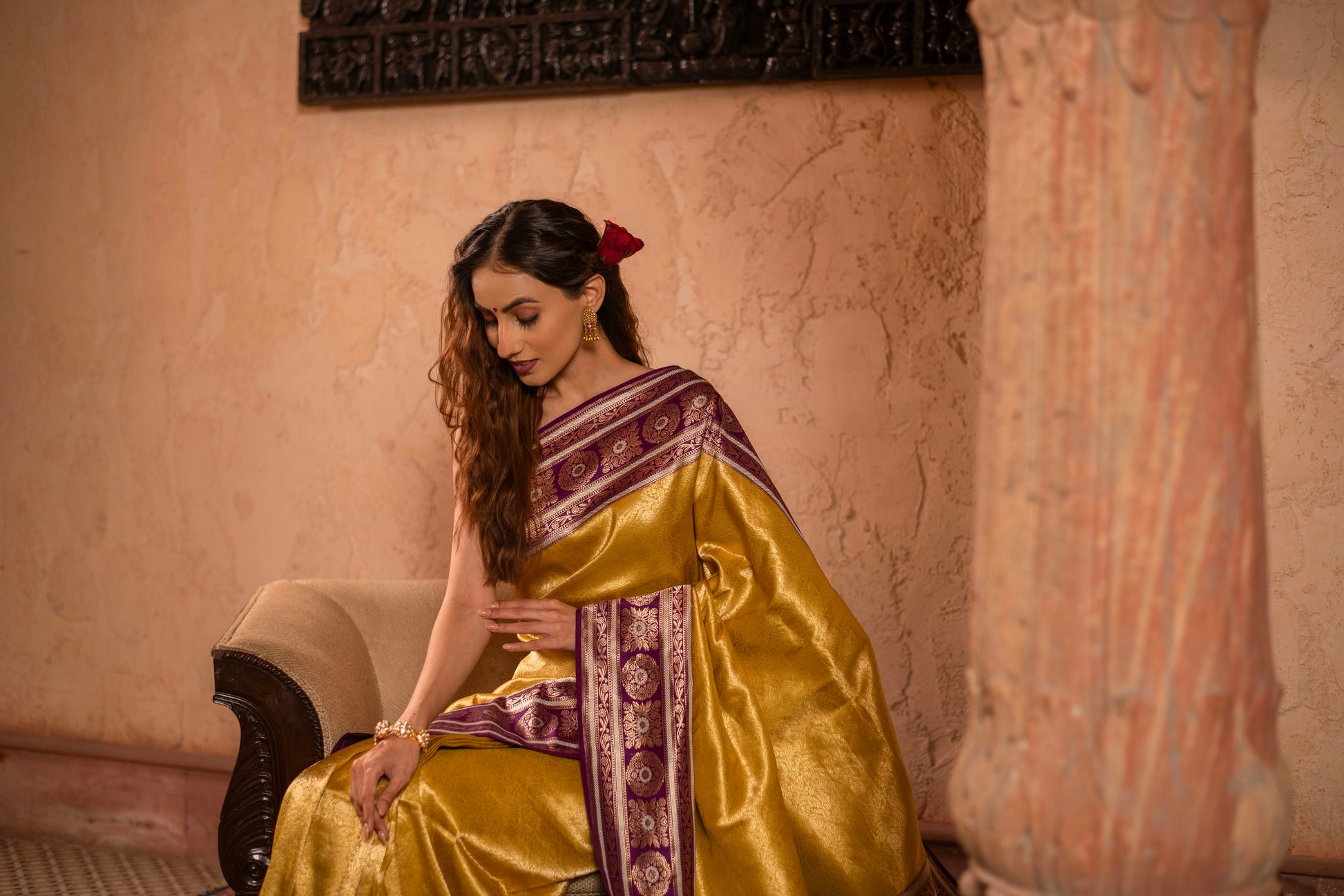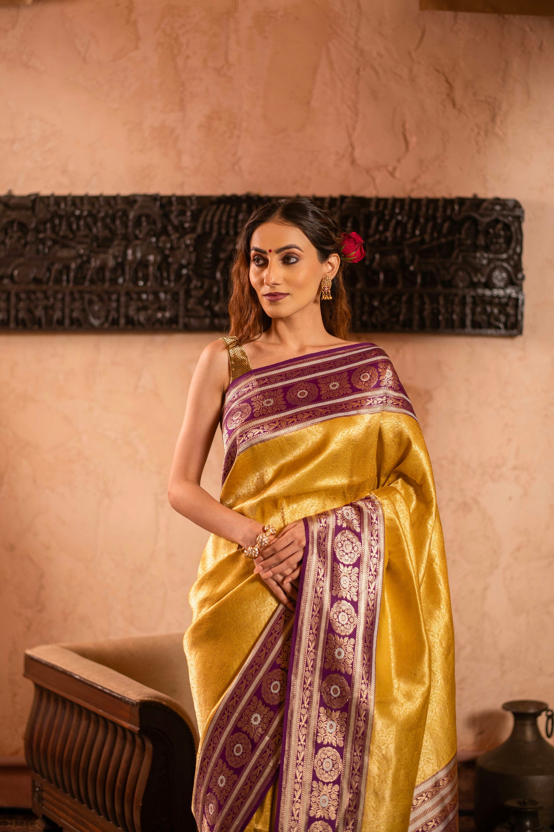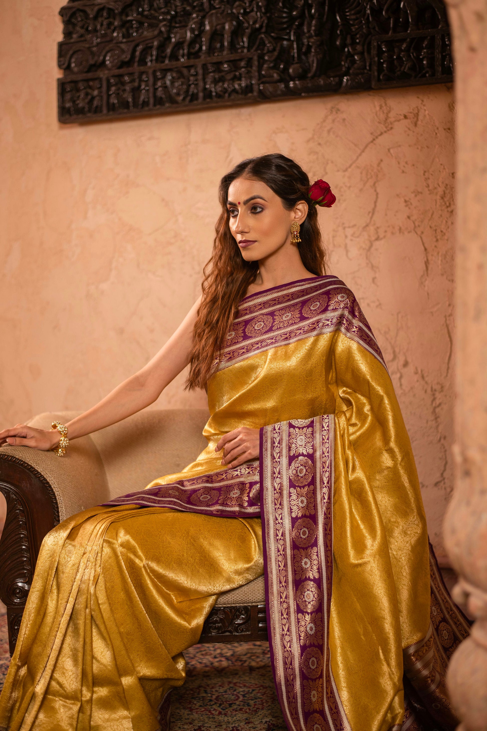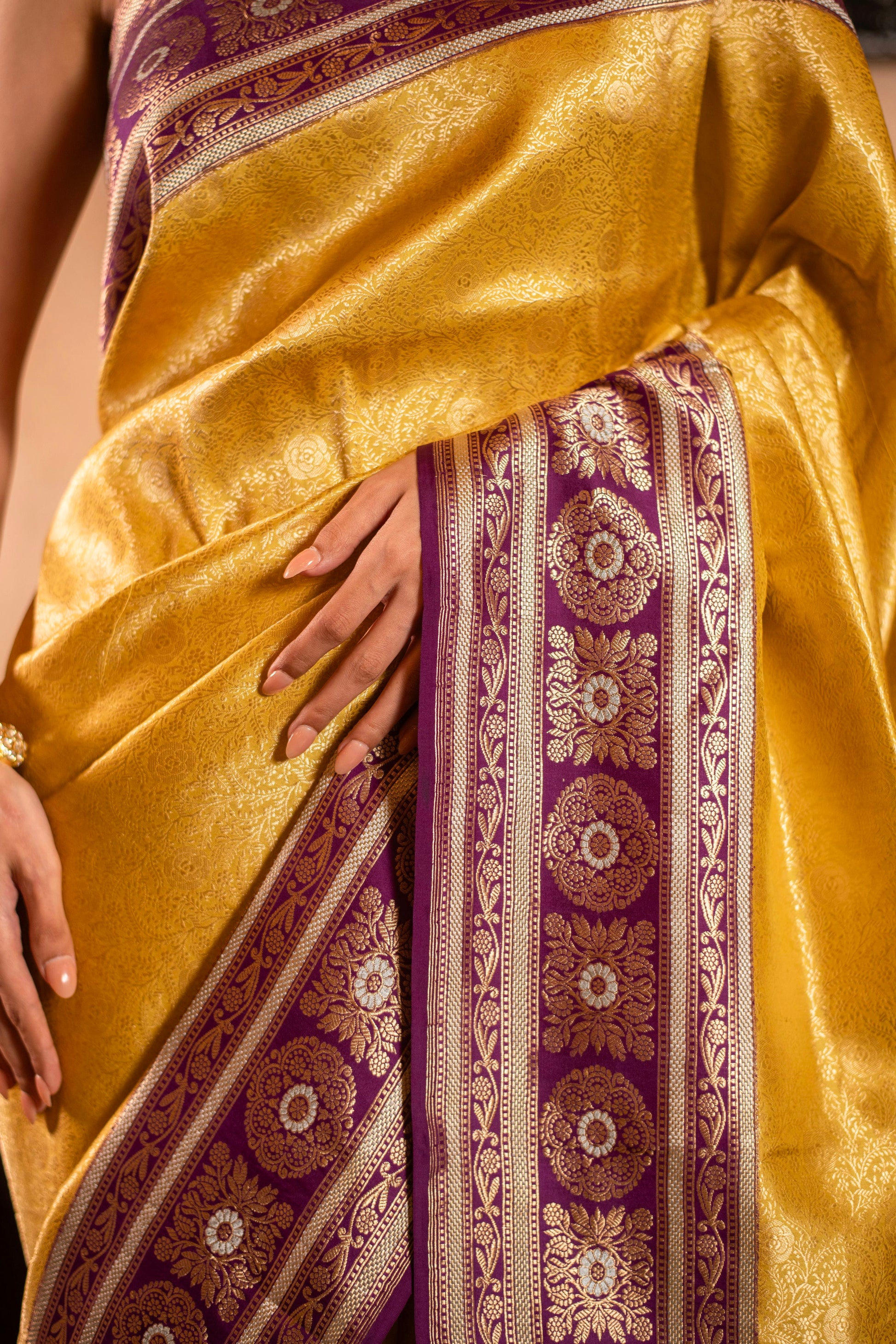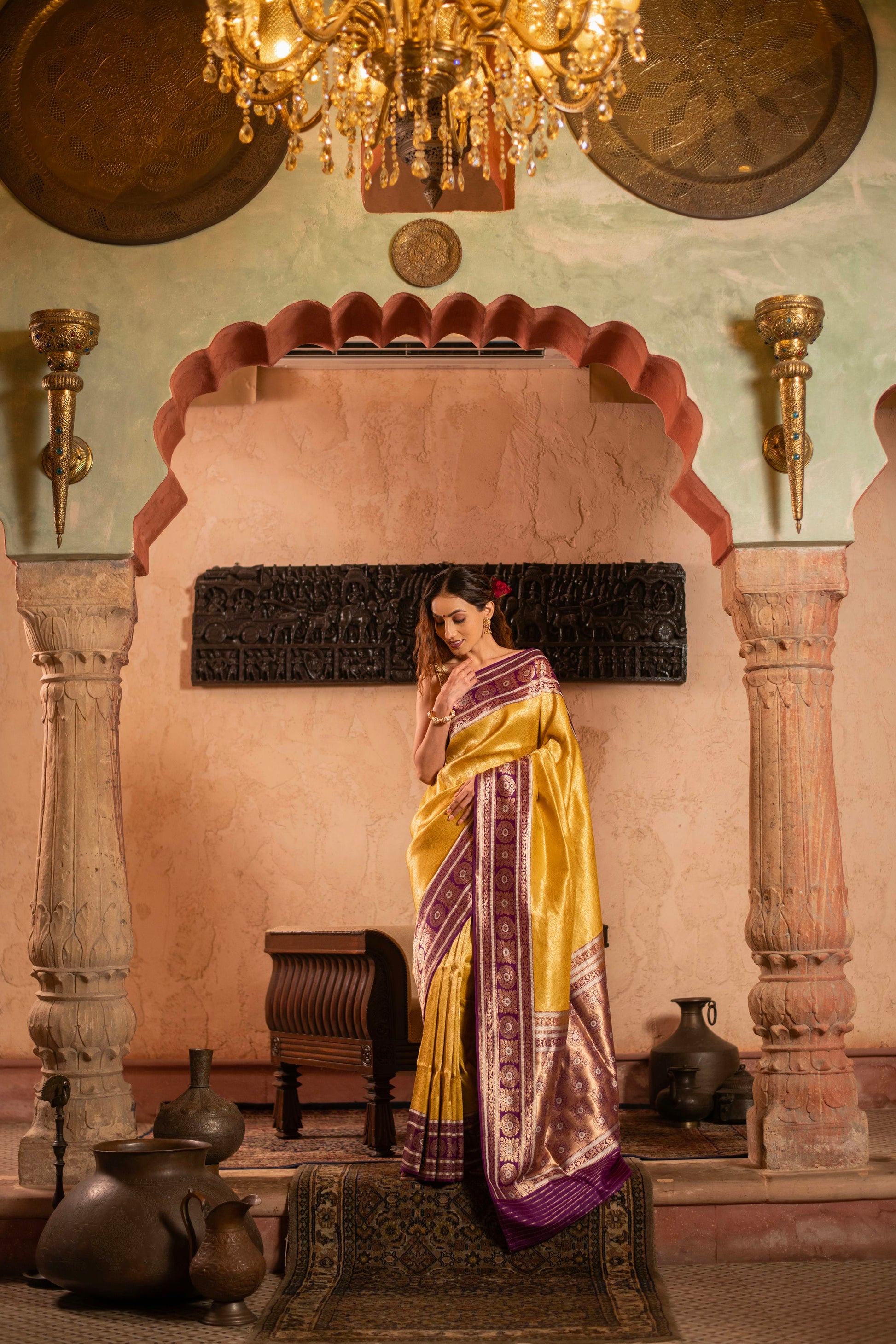 Soft Drape Katan Silk Brocade Saree with Contrast Vintage Revival Border