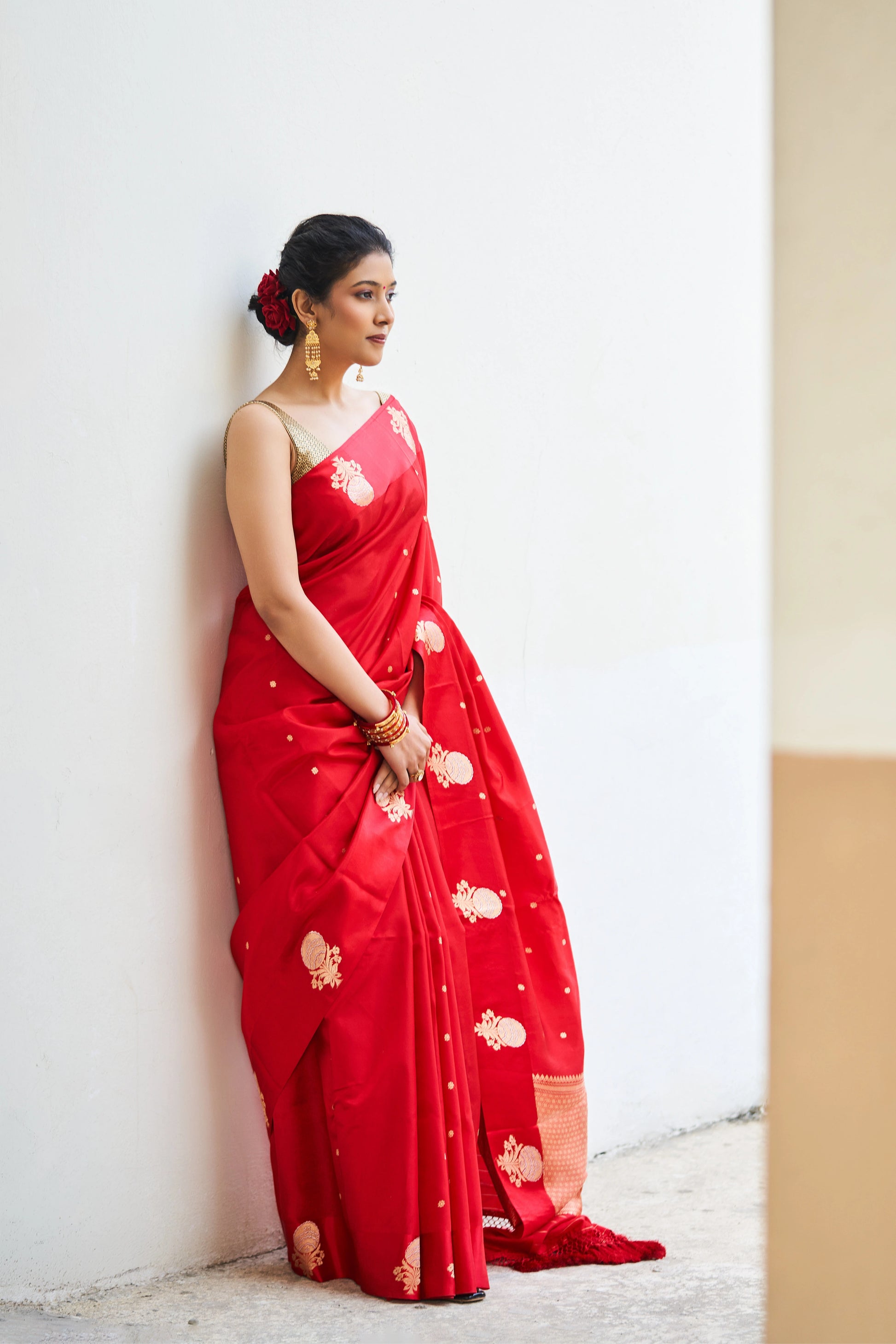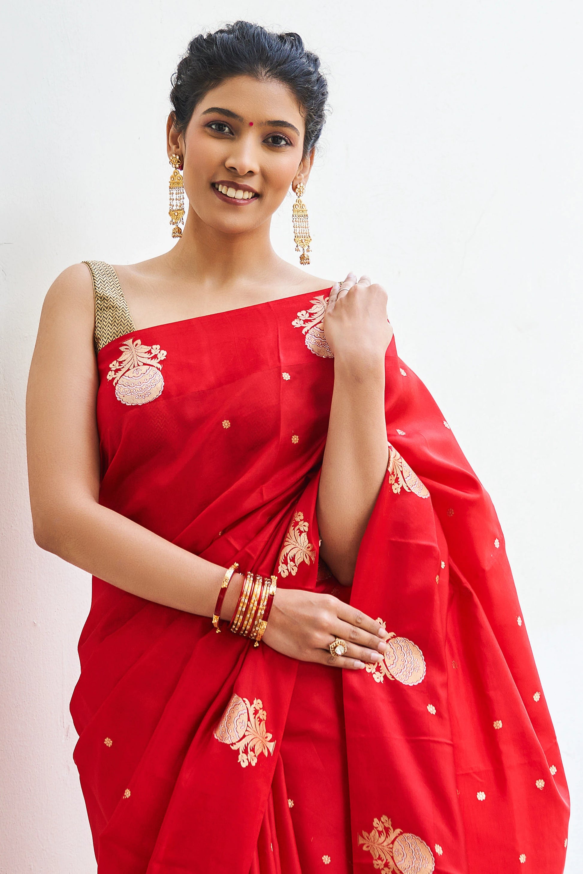 Gulabb Red Soft Katan Silk Banarasi Saree with Kadwa Weave