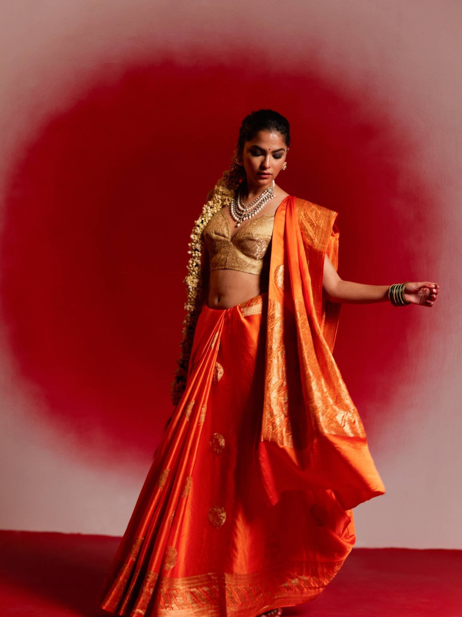 Sumedha (Orange Kadwa Mushru Silk Saree)