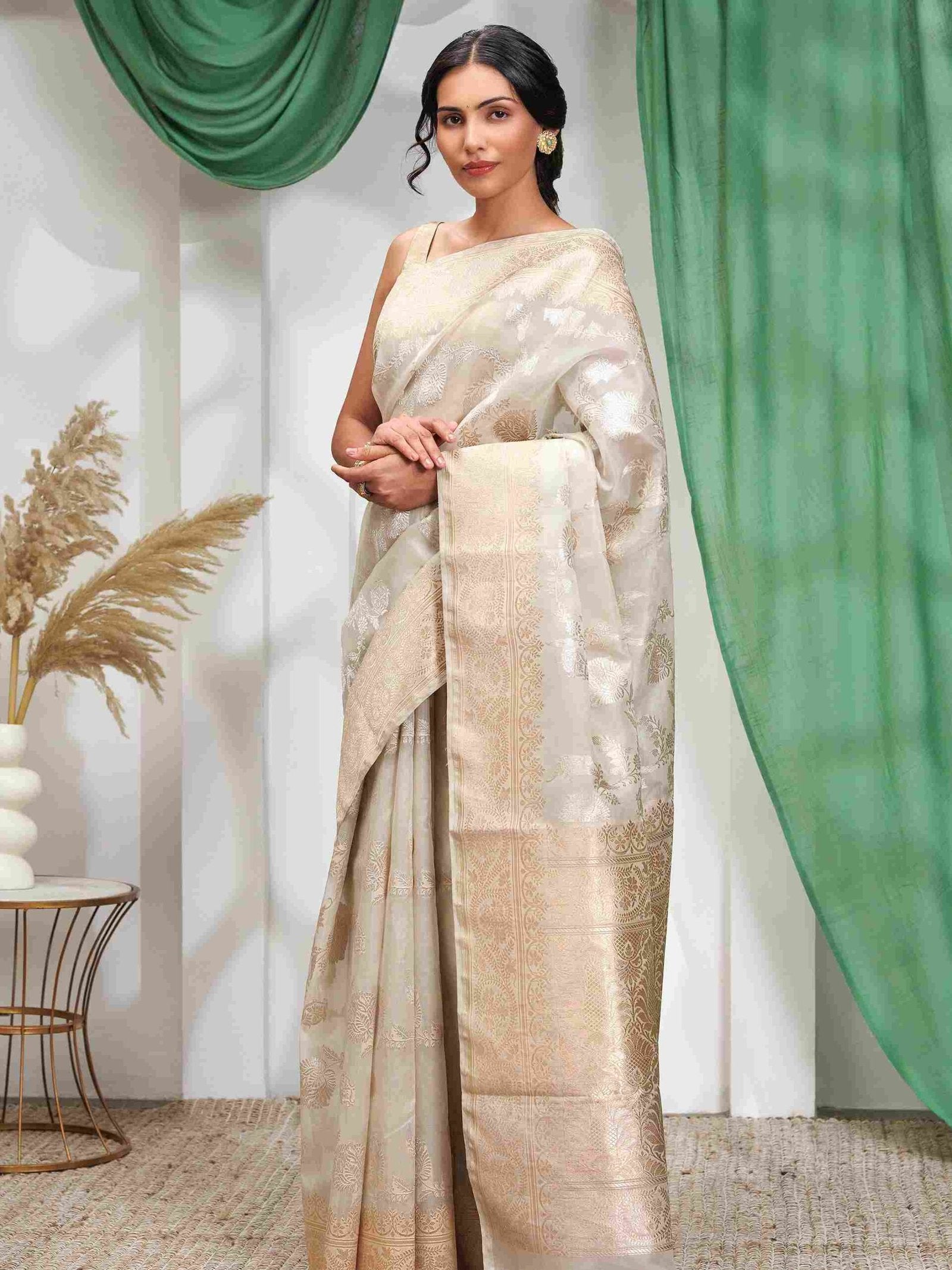 Immerse yourself in the timeless elegance of the Svarnisha (Kadwa Jangla Sona Rupa Kora Silk Saree) – a breathtaking embodiment of Banarasi tradition and intricate artistry. This saree is a true heritage piece that captures the charm of old-world craftsmanship while exuding regal sophistication. Woven in pure Banarasi Kora Silk, the fabric offers a delicate translucence and an ethereal drape, perfect for grand celebrations, weddings, or festive occasions.