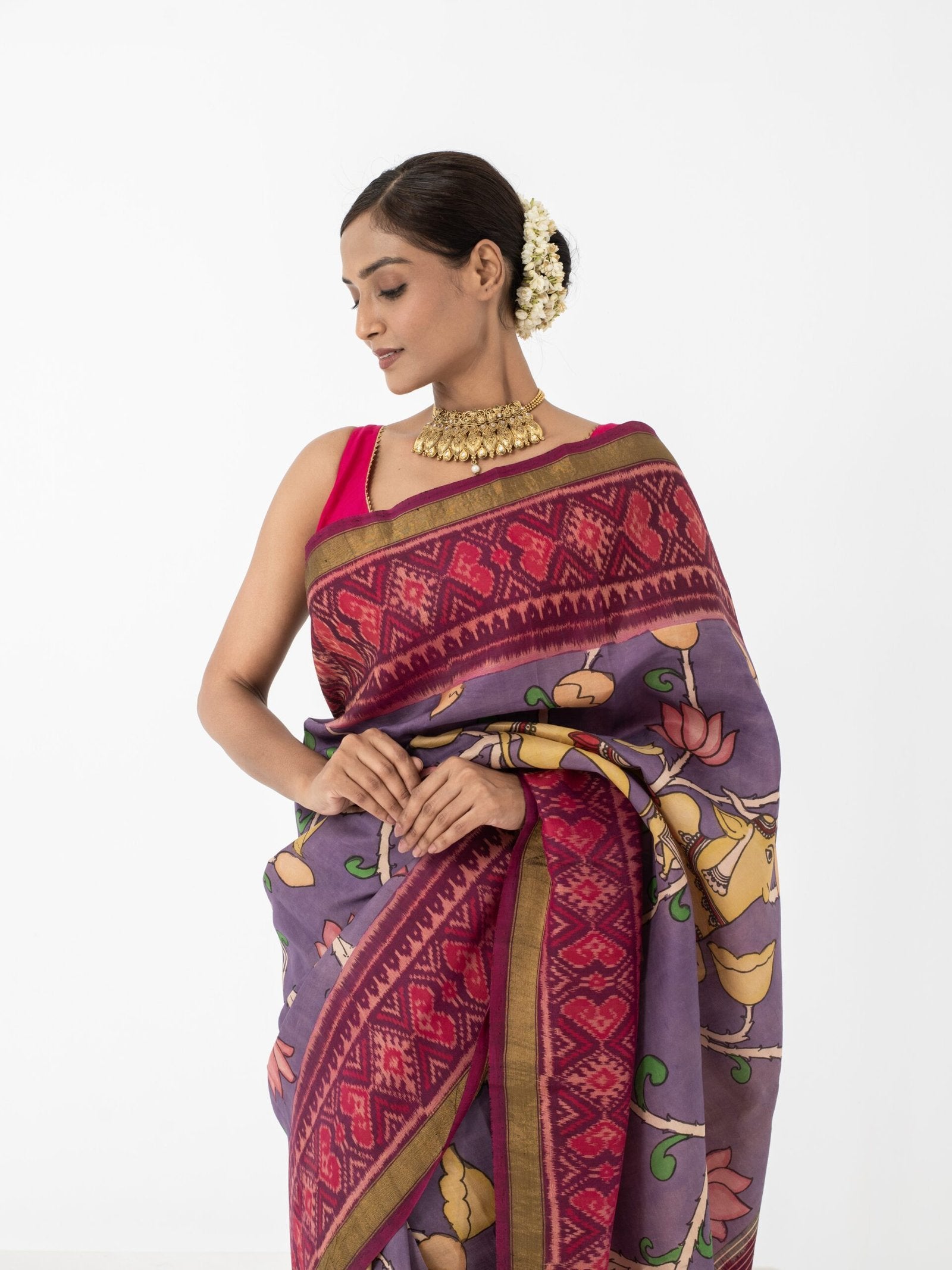 Urvashi (Lavender Pen Kalamkari Patola Saree)