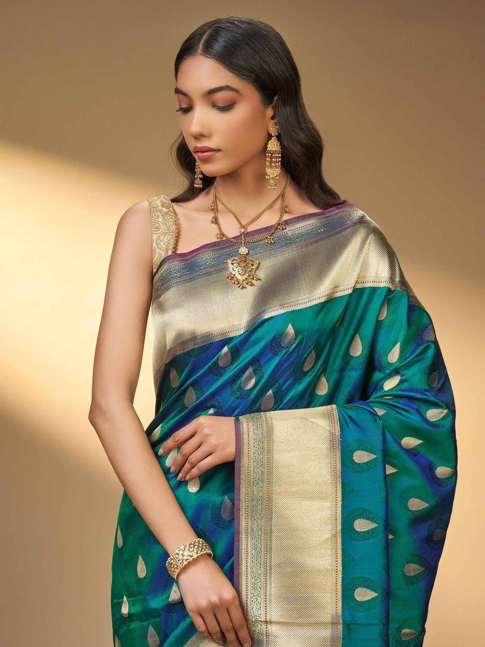 Usha (Two-Tone Katan Silk Kadwa Boota Saree)