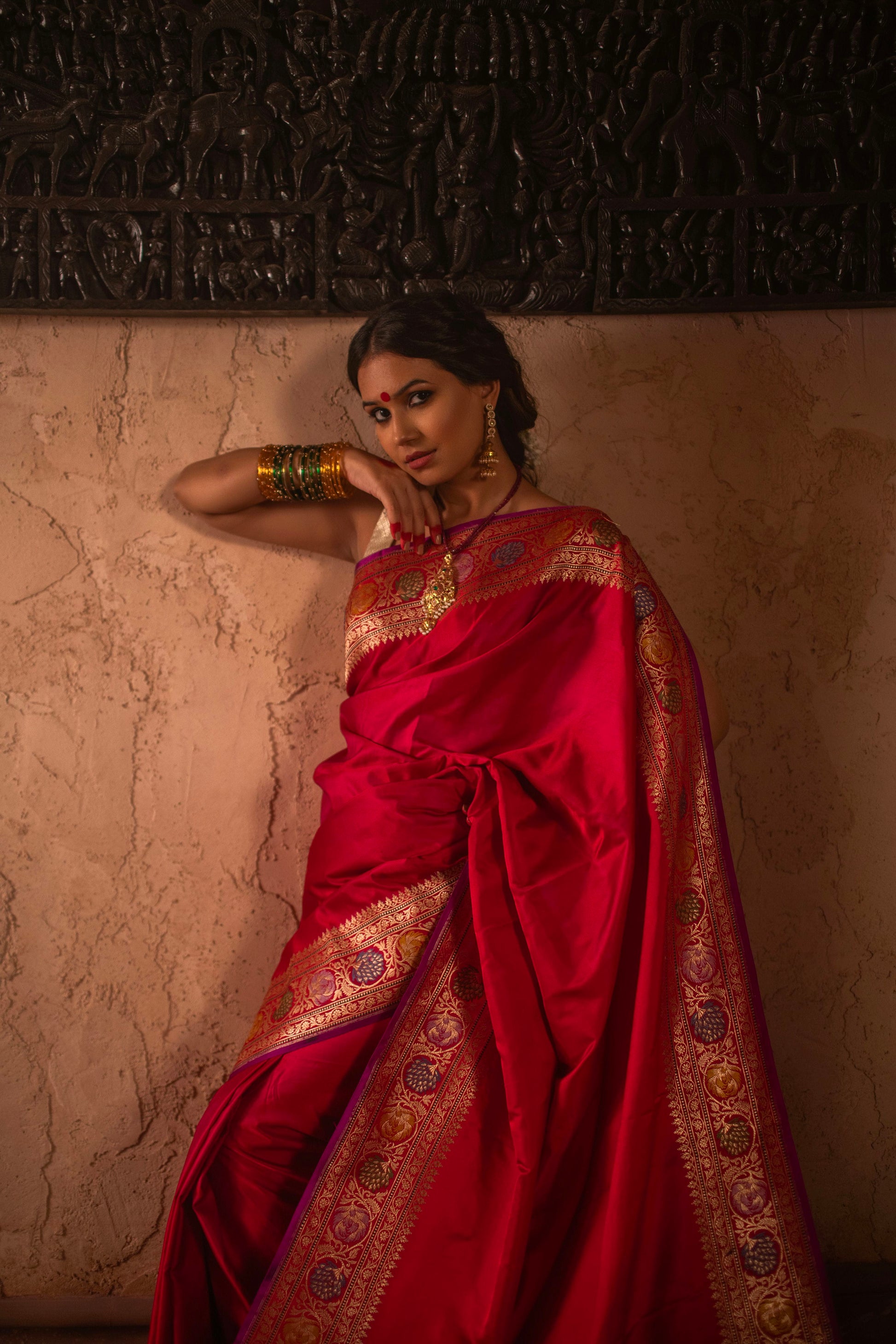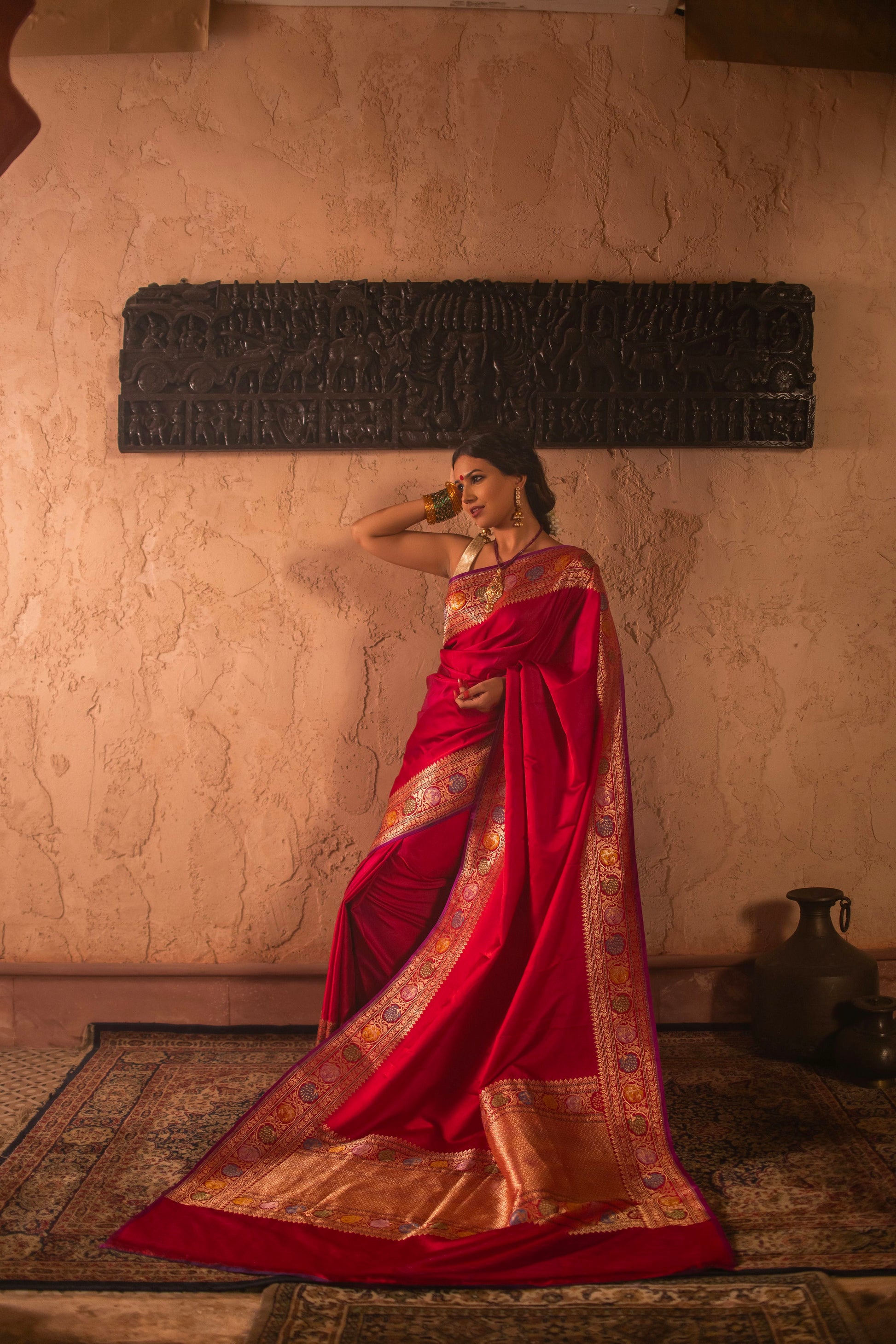 Vintage Mushru Silk Saree with Kadwa Meenakari Weave