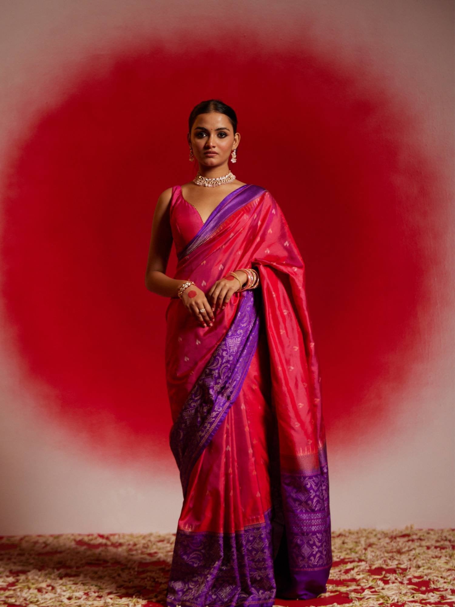 Work: All-over subtle zari weave with bold Jamdani border & pallu